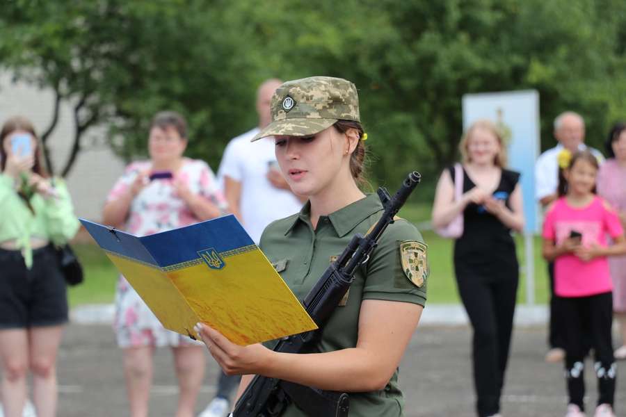 «Хочу вам побажати, як і кожному українцеві, мирного неба над головою та подякувати за ваш вибір. Це вибір патріотичних свідомих українців. Для того, щоб ваш шлях був успішним, ви повинні мати дві складові: віру та вміння. Віру в Бога, в Україну, в перемогу, у своїх товаришів та побратимів, в коханих і всіх, кого ви обираєте в своє середовище. Ви також повинні мати вміння і я дуже сподіваюся, що військова кафедра гідно навчила вас, бо цей вид навчання не має права на фальш, адже ви відповідатимете за себе і за тих, хто поруч», – привітала курсантів із важливим днем у їхньому житті ректор ЛНТУ Ірина Вахович.