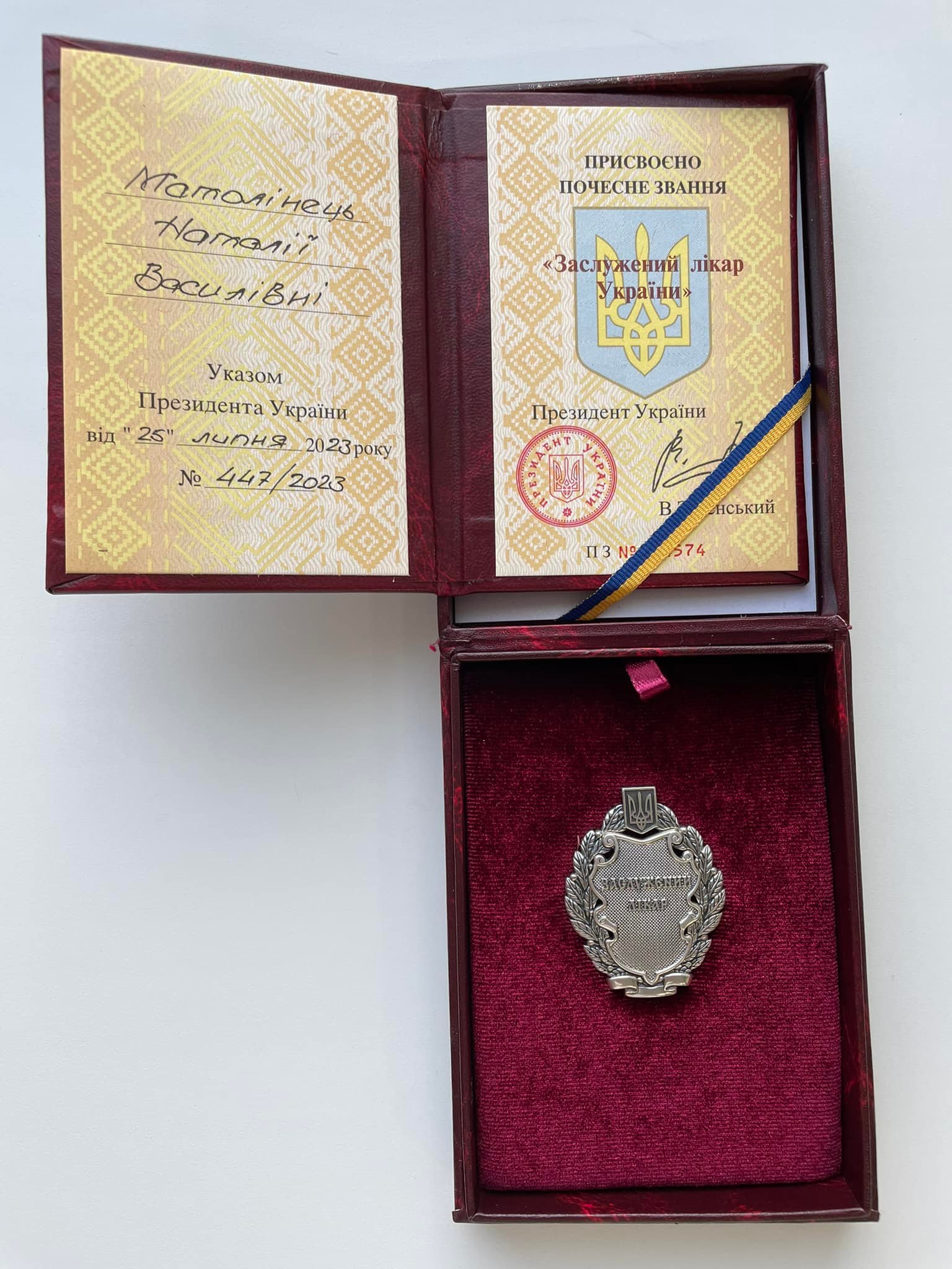 Нагороду вручив президент України Володимир Зеленський з нагоди Дня медичного працівника.