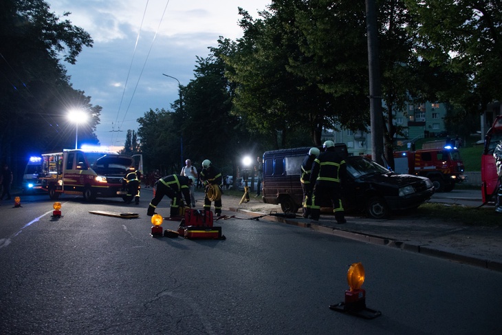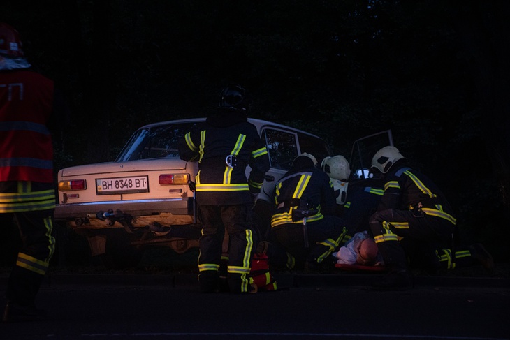 Бійці аварійно рятувальної частини провели деблокування потерпілих з легковика, застосувавши спеціальне обладнання для розрізання конструкцій деформованого автомобіля.