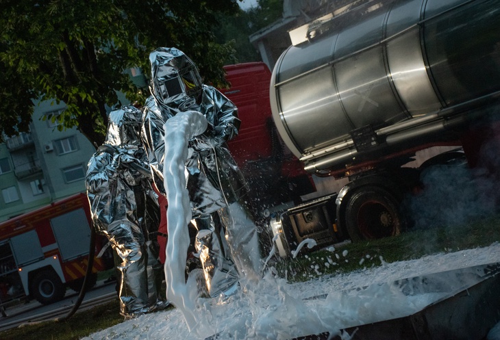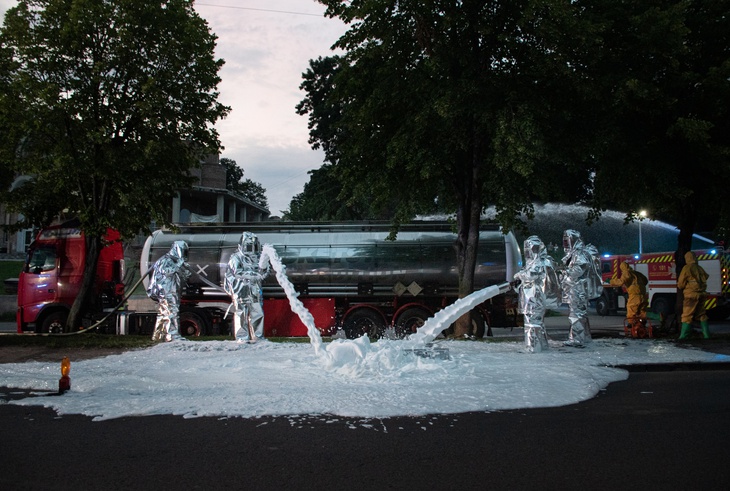 За легендою навчань, подія трапилась на вулиці Глушець у Луцьку - водій легкового автомобіля зіткнувся в автоцистерною, що перевозила пальне, ще одне авто зазначало пошкоджень.