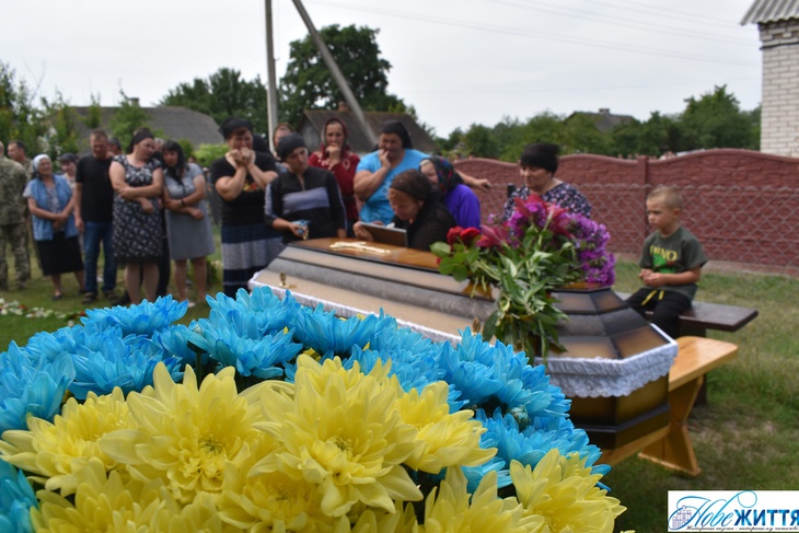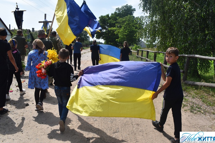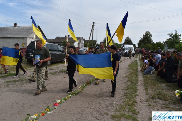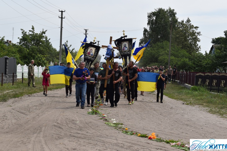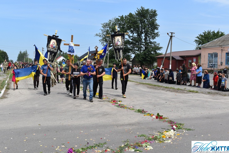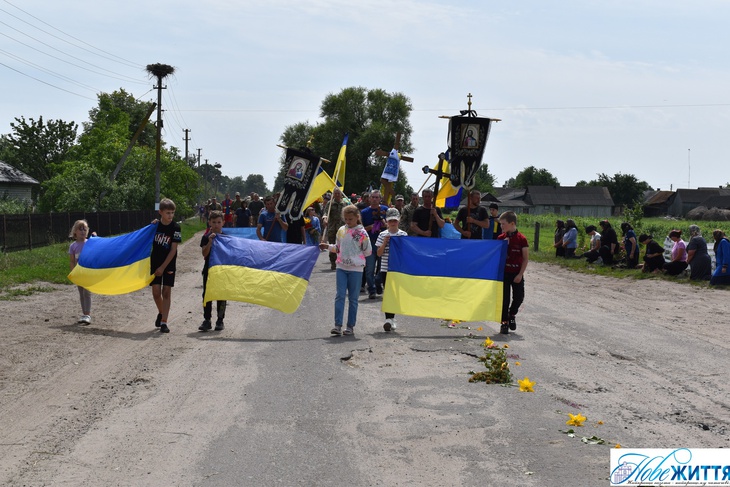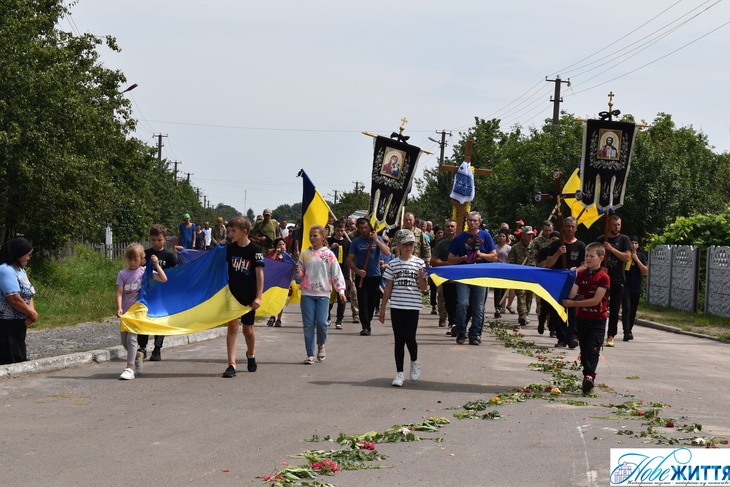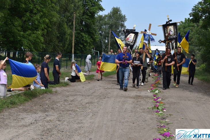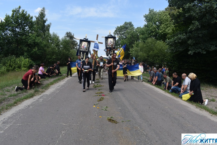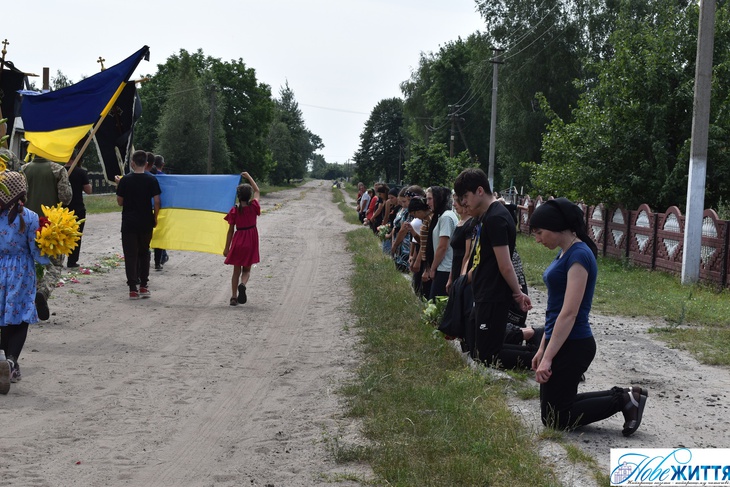 «Все село стало на коліна, аби віддати шану воїну Юрію Хрупчику, котрий загинув на війні за всіх нас. У Героя залишилися дружина, син та донька», - йдеться у дописі.