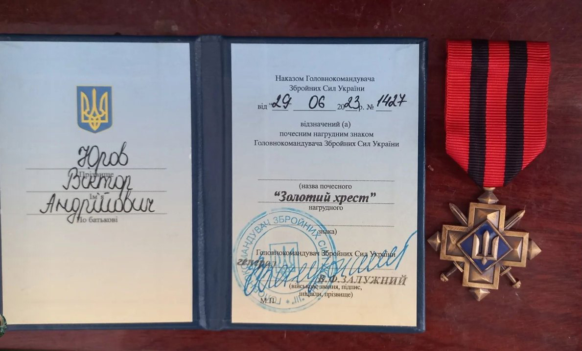 Військовослужбовець з Луцька Віктор Юров на псевдо «Хімік» отримав «Золотий хрест» від Головнокомандувача ЗСУ Валерія Залужного.