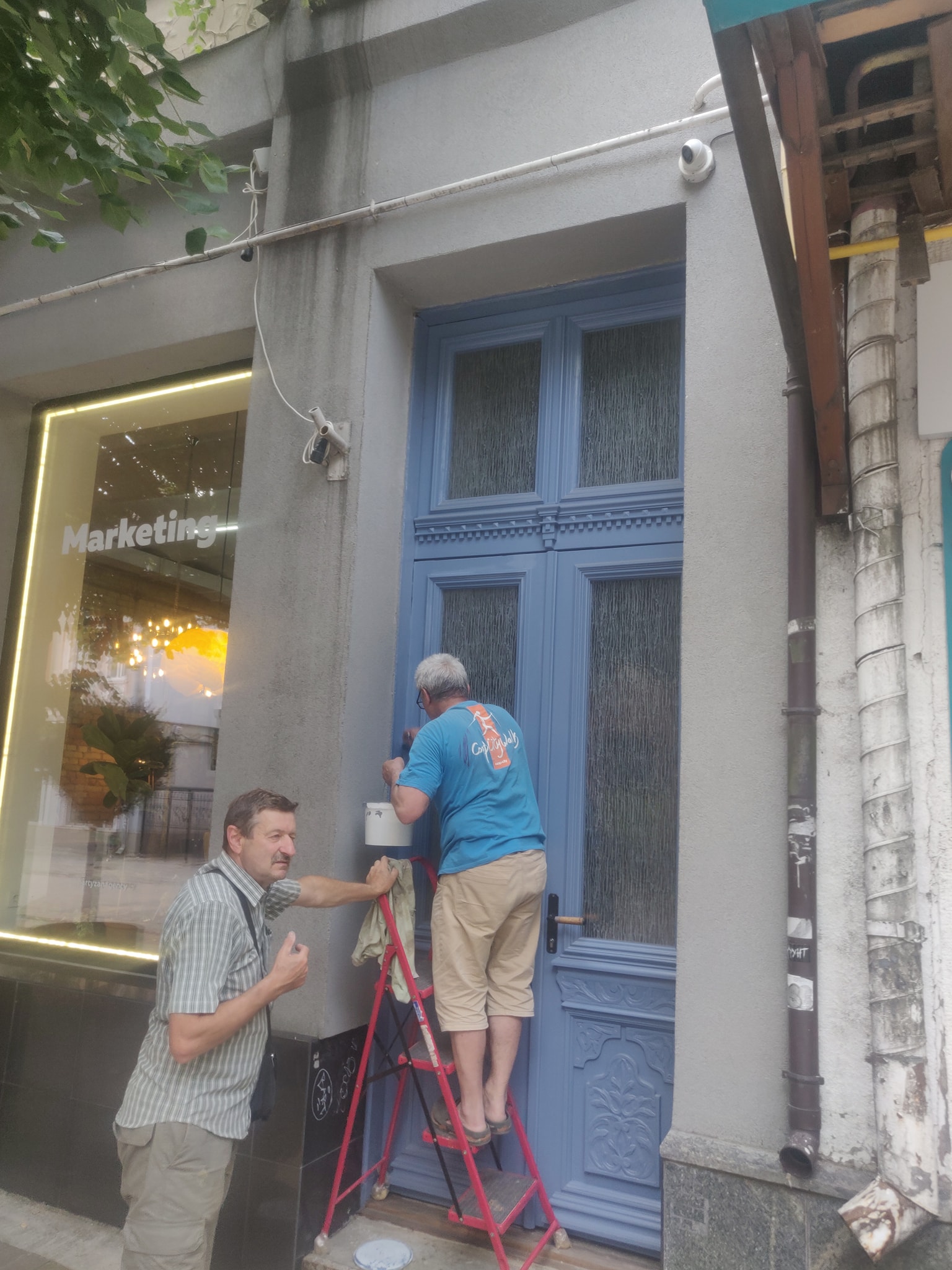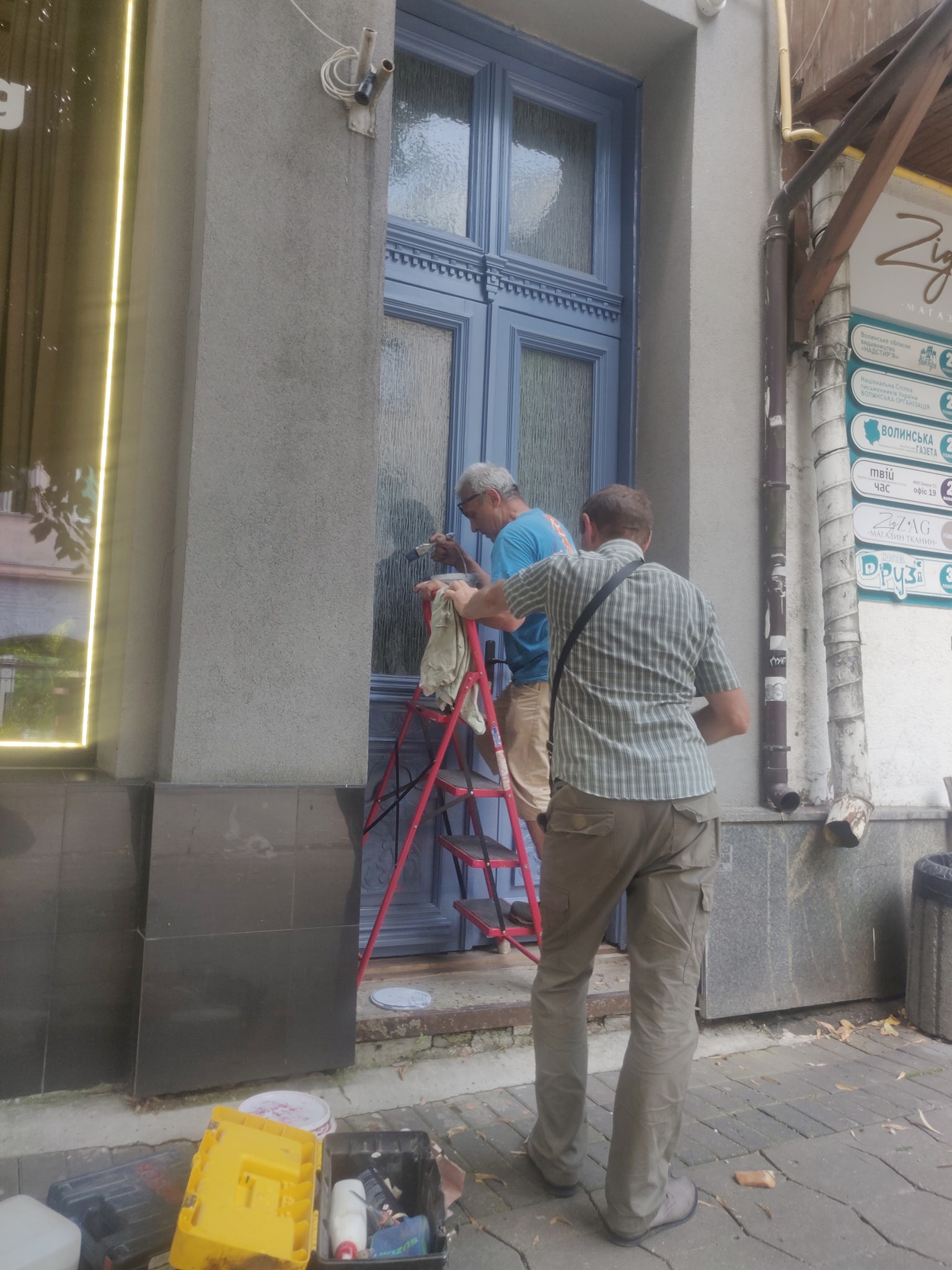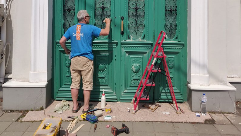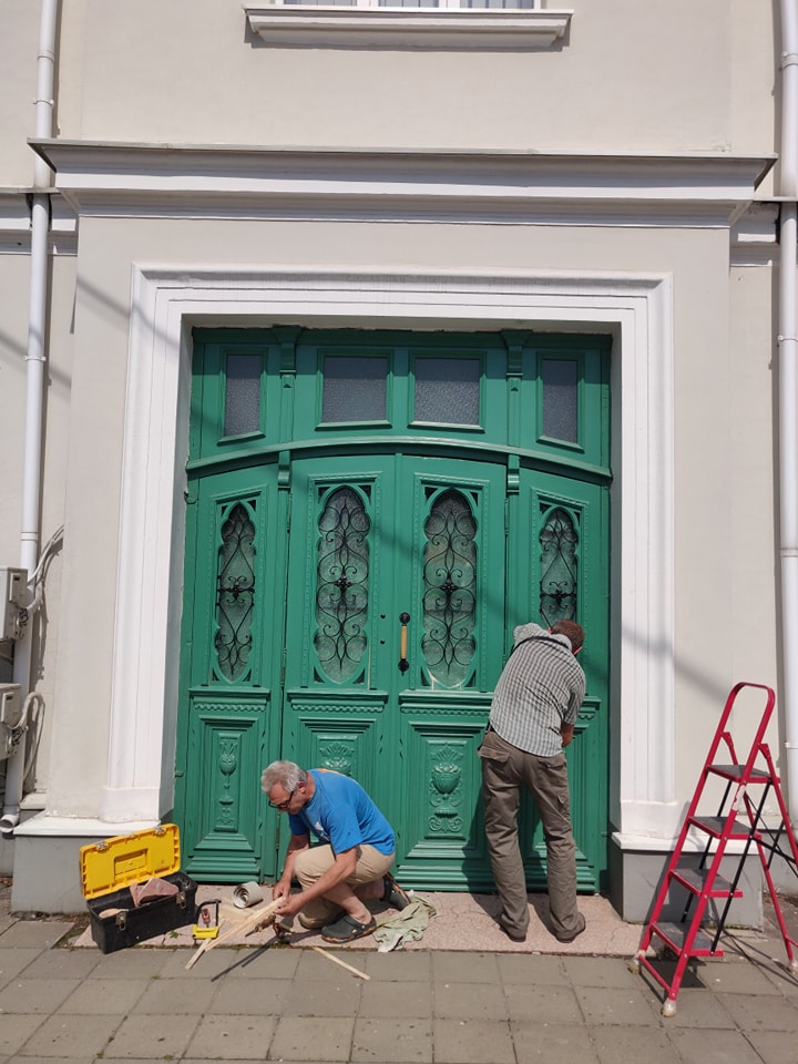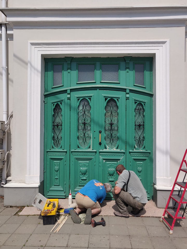 Майстри оглянули троє дверей: бордові на вулиці Кривий Вал, блакитні на вулиці Лесі Українки та зелені на вулиці Словацького, 1. Останні – потребували допомоги реставраторів.