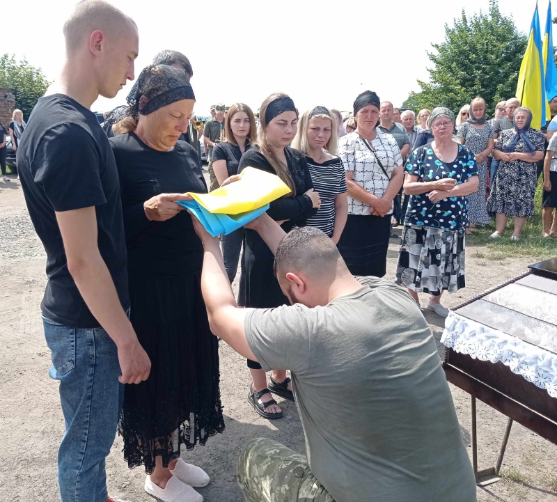 Рідним Героя вручили Державний Прапор України, який почесна варта зняла з домовини. На честь солдата пролунав трикратний стрілецький салют…