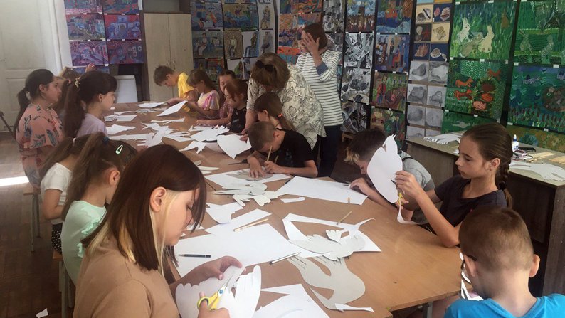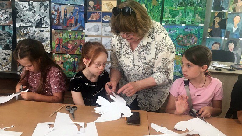 "Ми вирішили в техніці паперової пластики зробити з дітками голуба миру, як символ миру, якого ми всі хочемо", – говорить Валентина Попова.