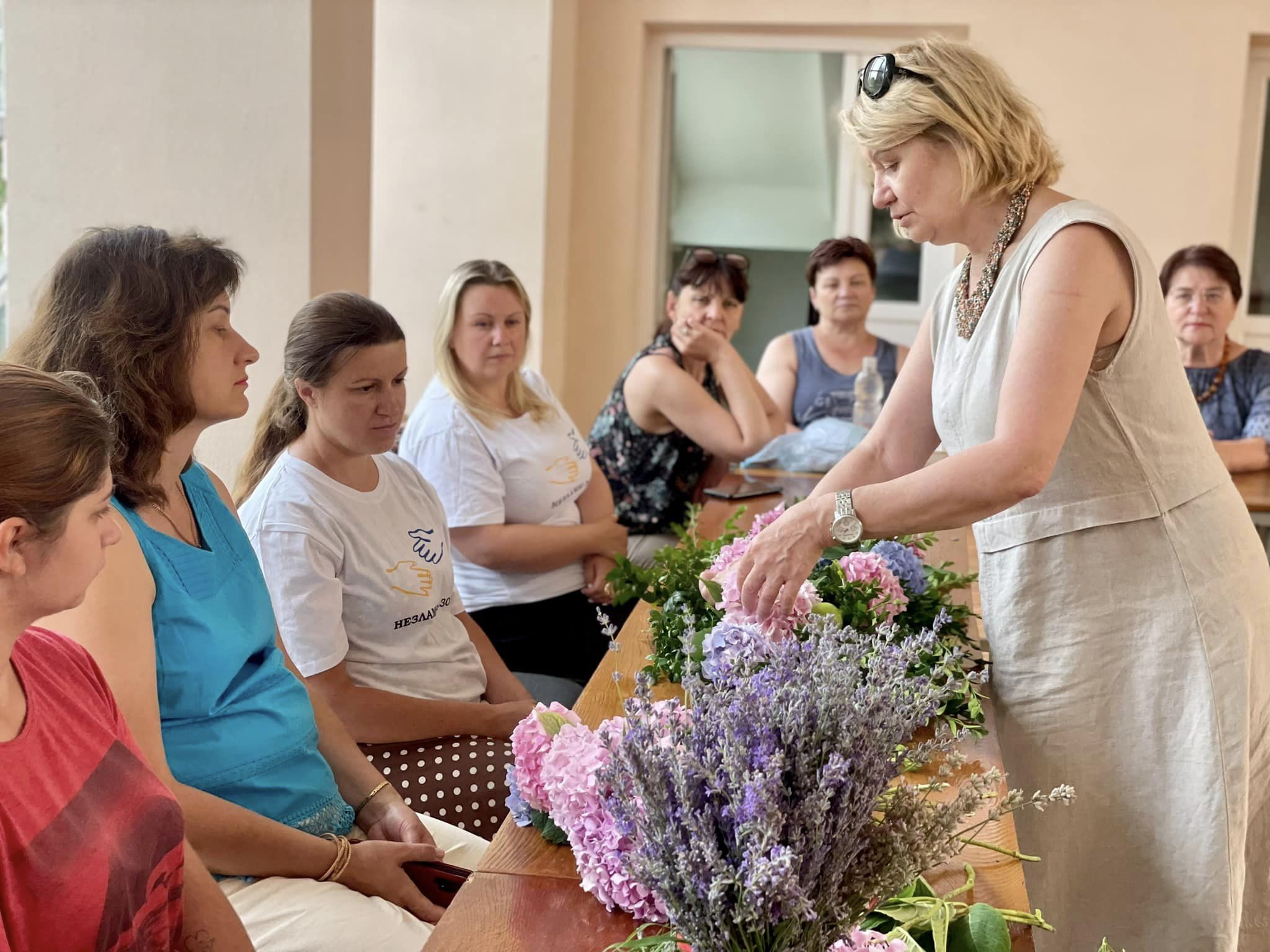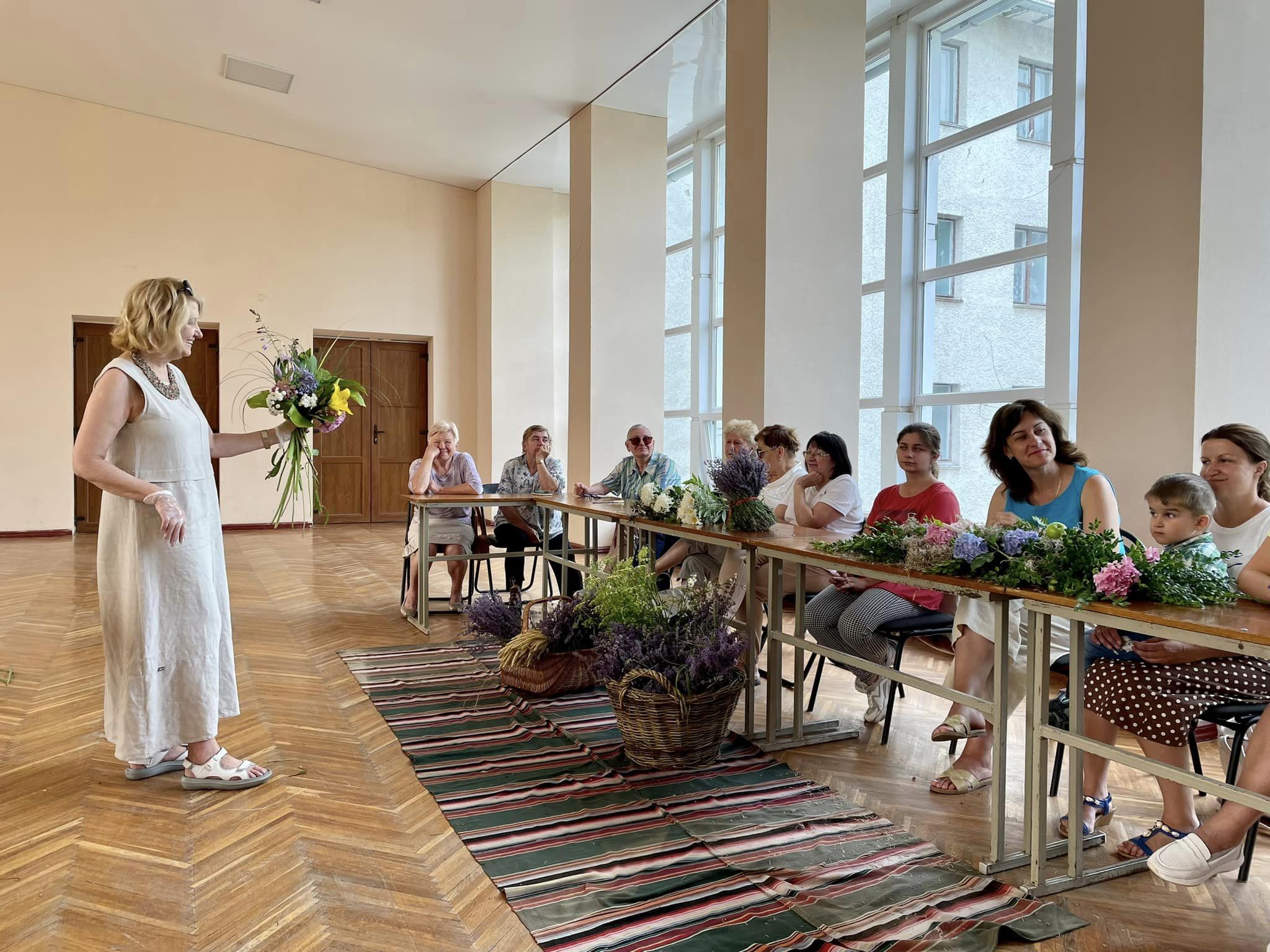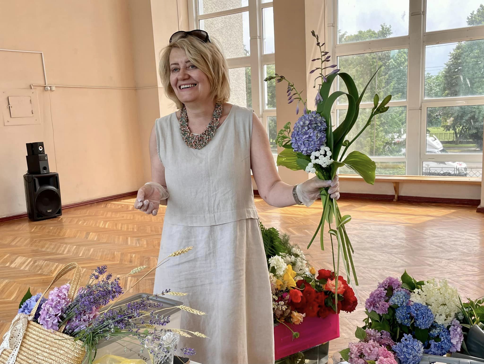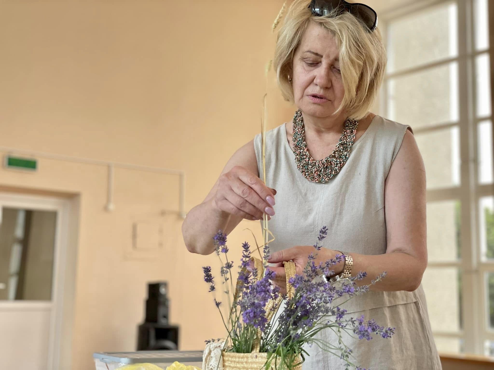 Створені на занятті букети з лаванди, ромашок, лілій, троянд, гортензій та інших квітів будуть представлені на благодійному квітковому ярмарку.