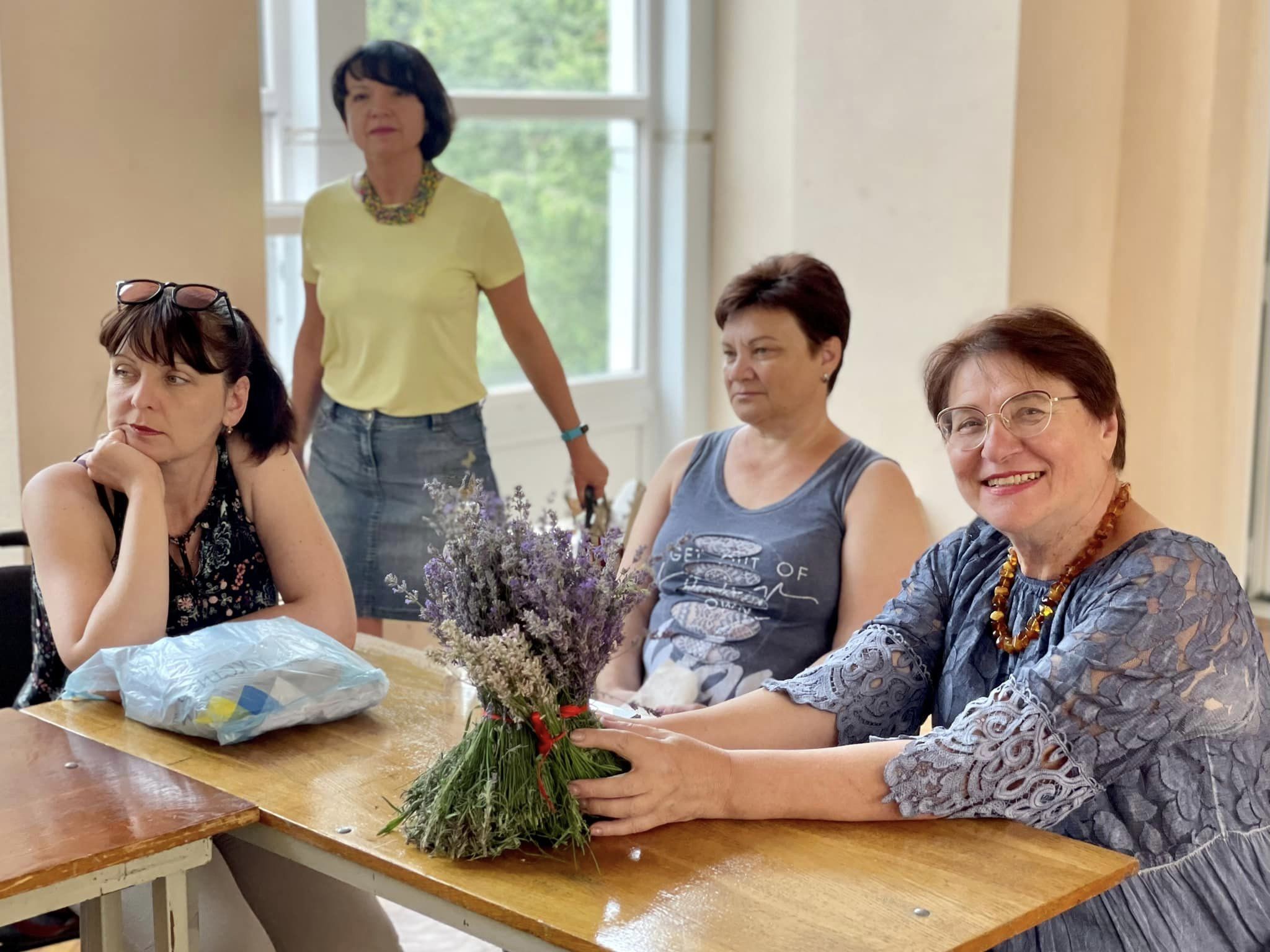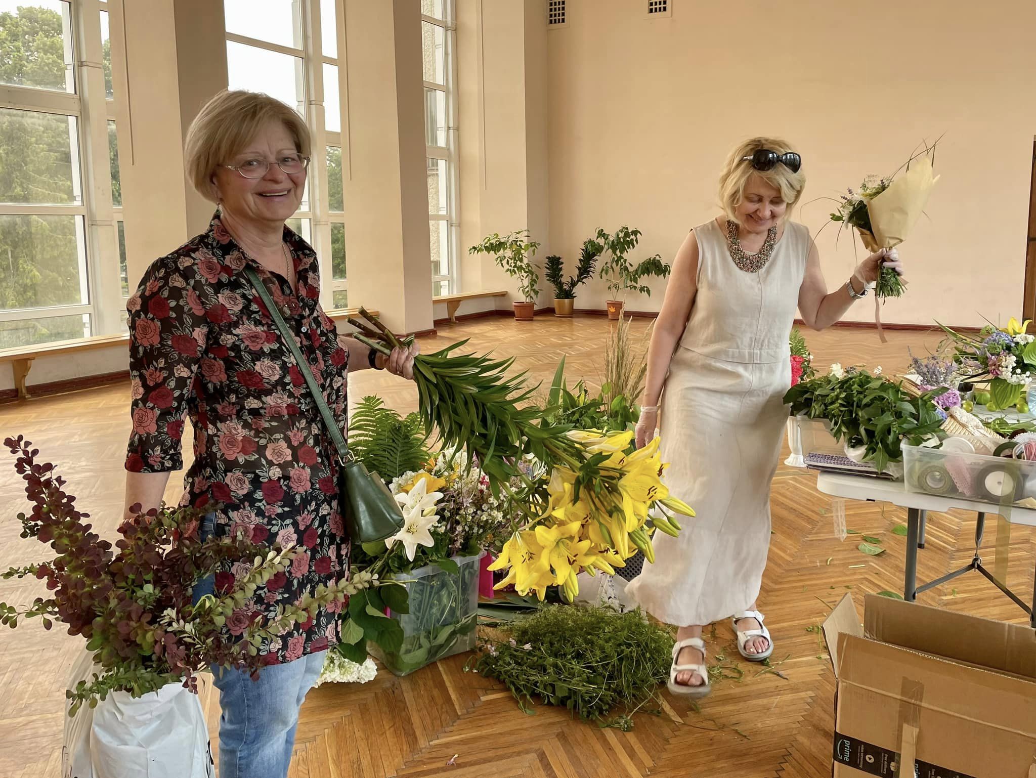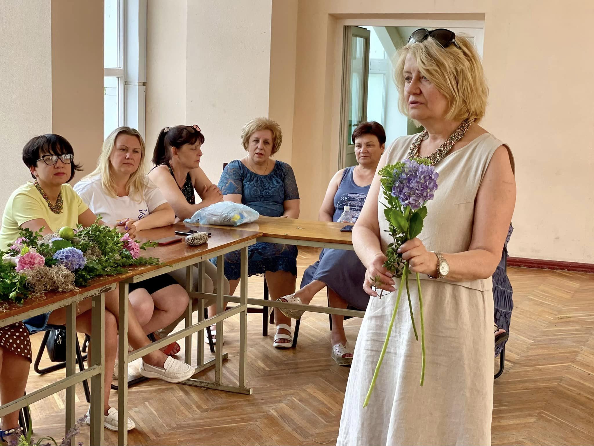 Створені на занятті букети з лаванди, ромашок, лілій, троянд, гортензій та інших квітів будуть представлені на благодійному квітковому ярмарку.