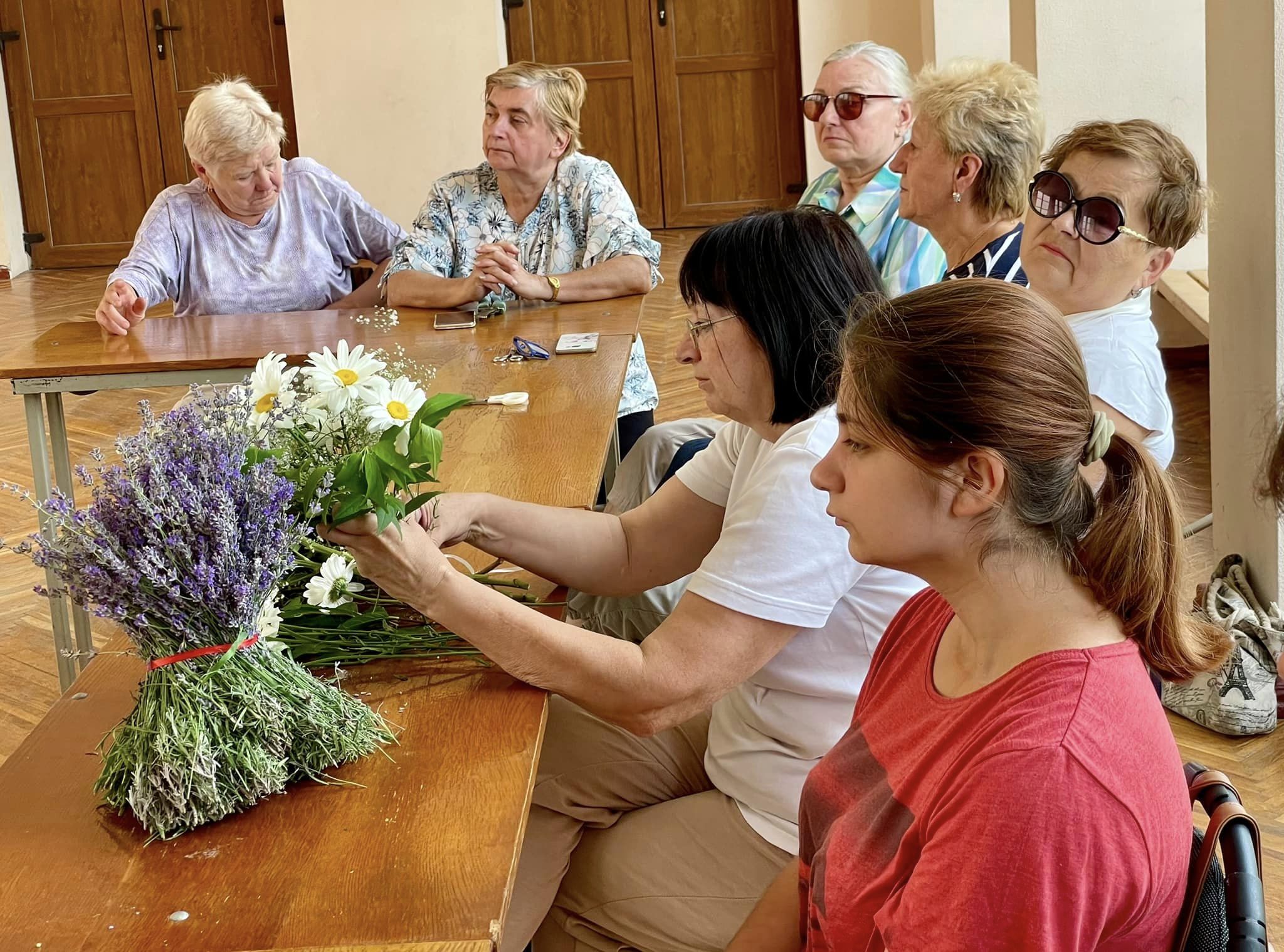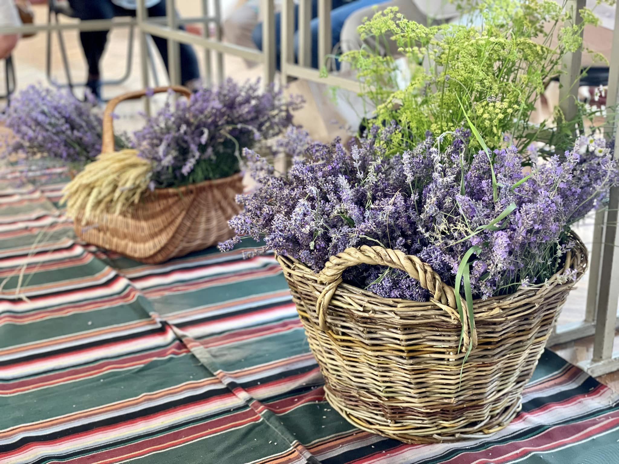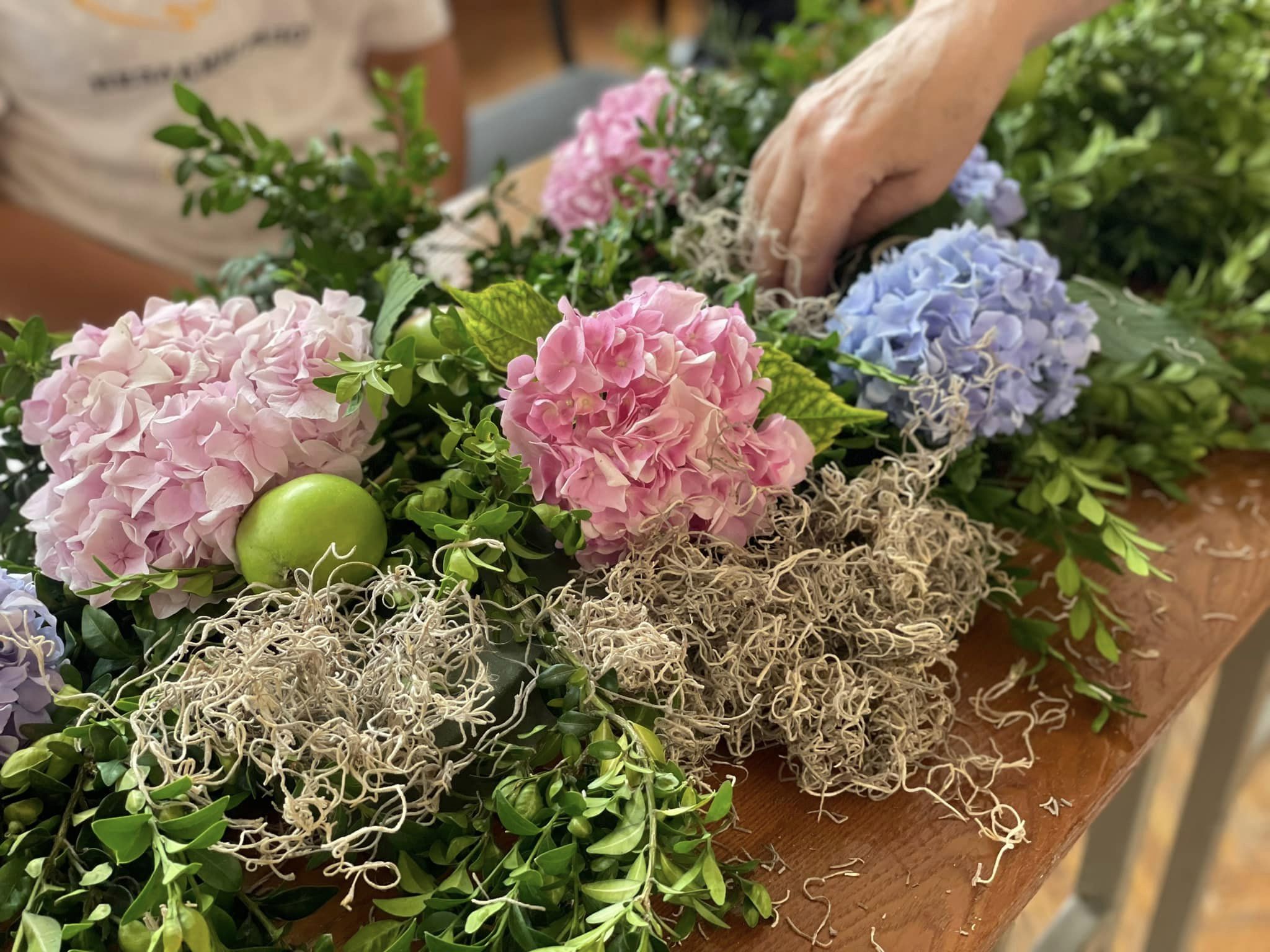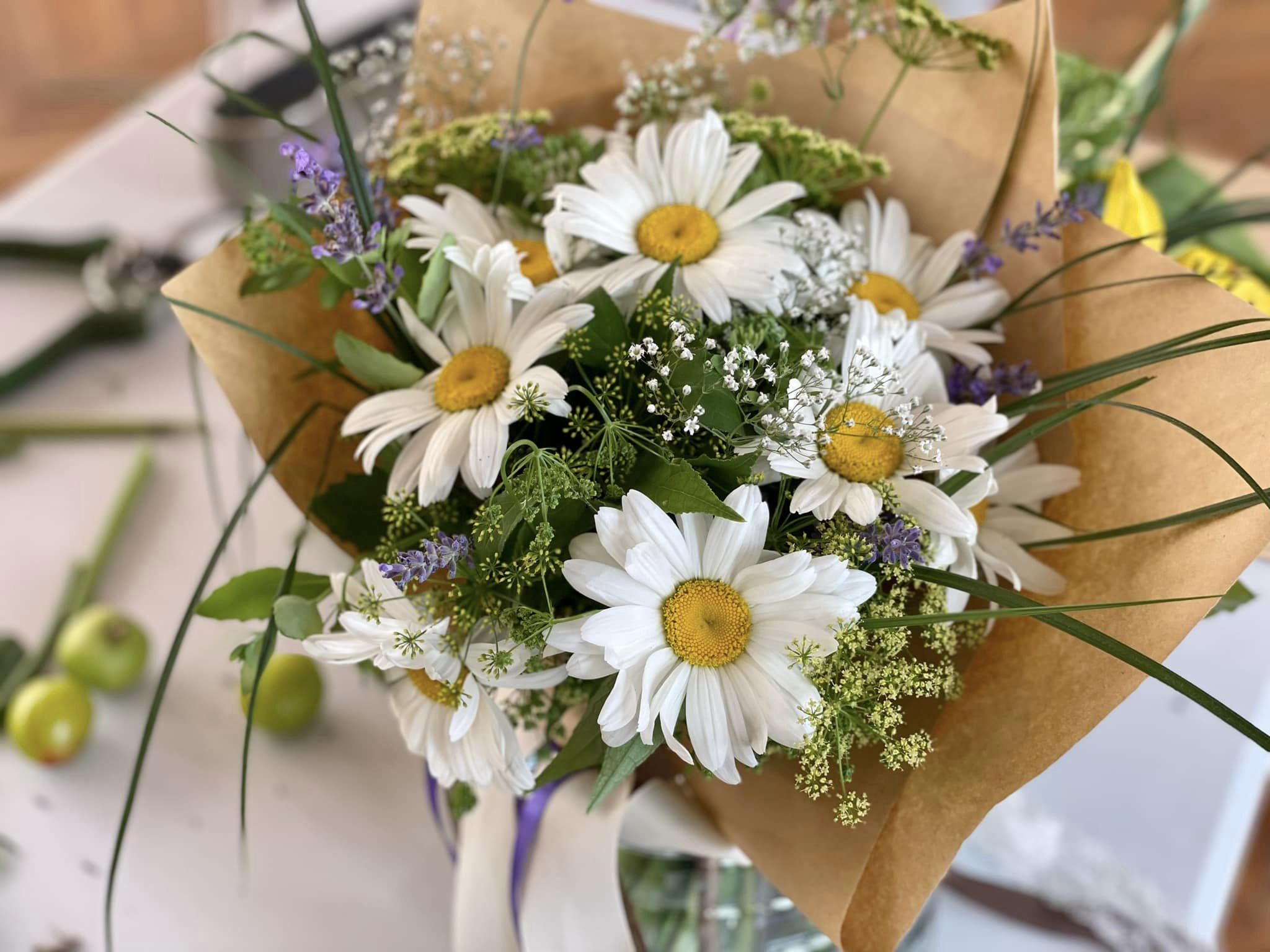 Створені на занятті букети з лаванди, ромашок, лілій, троянд, гортензій та інших квітів будуть представлені на благодійному квітковому ярмарку.