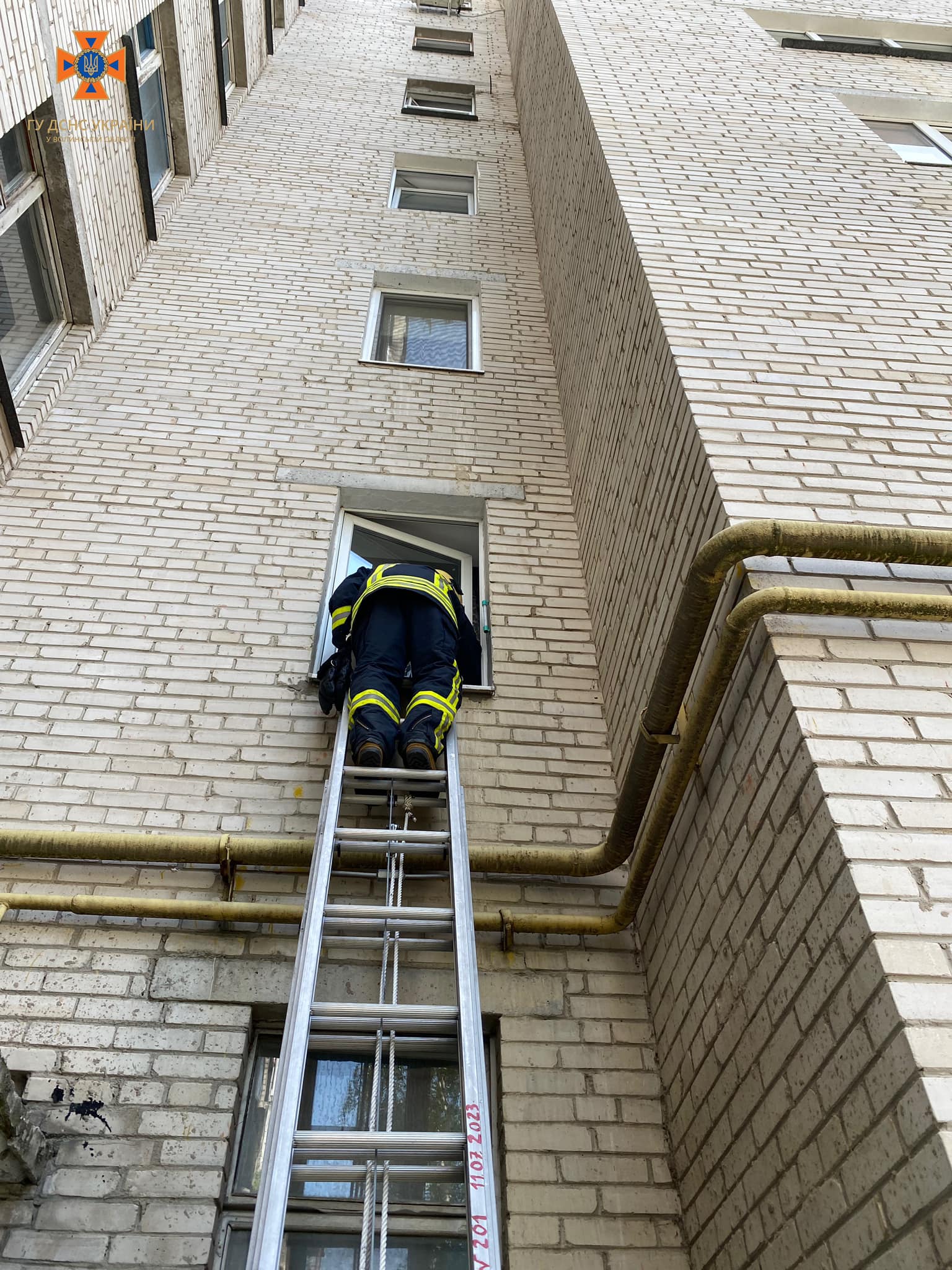 На місце виклику прибули рятувальники міської 1-ї державної пожежно-рятувальної частини. Розгорнувши драбину та за допомогою спеціального обладнання співробітники служби 101 відкрили вікно.