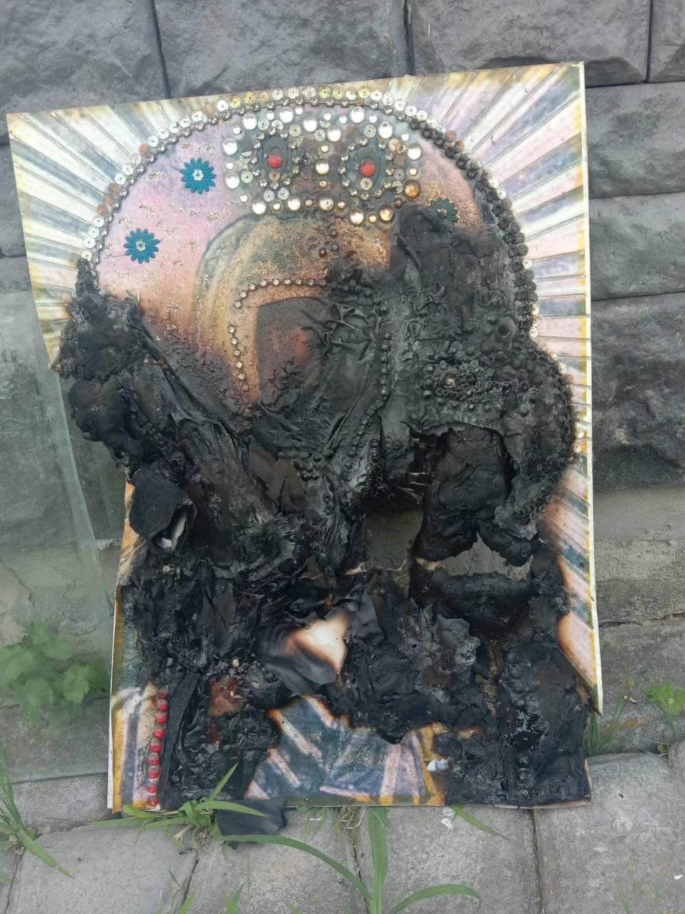 Так, за його словами, вандали понищили вхідні двері каплиці, а також спалили чудотворну ікону Будятичівської Пресвятої Богородиці, також молитву, що була прикріплена поряд.