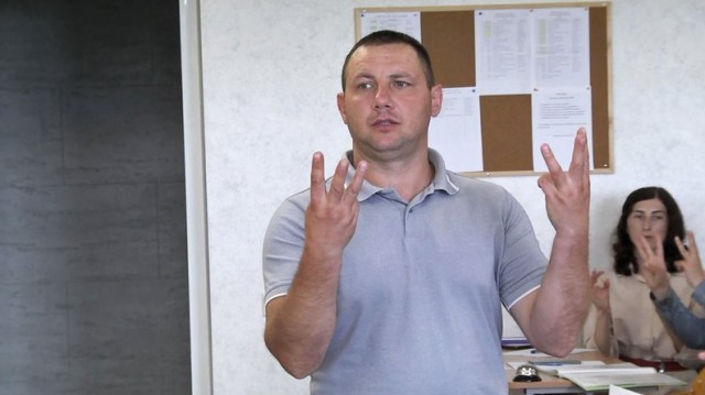 На Волині працівники обласного управління Державної служби з надзвичайних ситуації навчаються жестової мови за базовою програмою, котра містить понад тисячу слів.