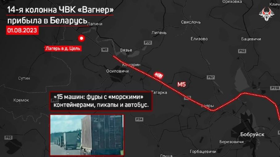 Сьогодні, 1 серпня до білорусі прибула 14 колона найманців з ПВК «Вагнер». У її складі помічено 15 машин.