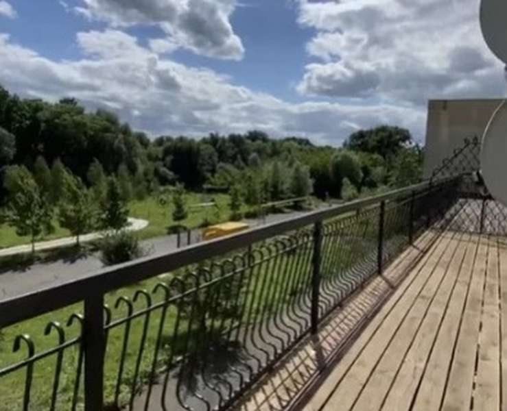 Квартира знаходиться на другому поверсі новобудови, а однією з її переваг, за словами рієлторів, є «мальовничий вид на річку Стир, який відкривається з тераси площею 20 м2, яка огортає всю квартиру ззовні. До слова, власники квартири залишають усі меблі та техніку.