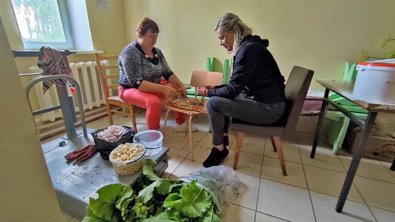 Зі слів волонтерки, господині Оксани Рокун, заквашують огірки для бійців як для своїх рідних: "Кріп, хрін, часник, а головне — любов і віра, що буде усе добре і перемога".