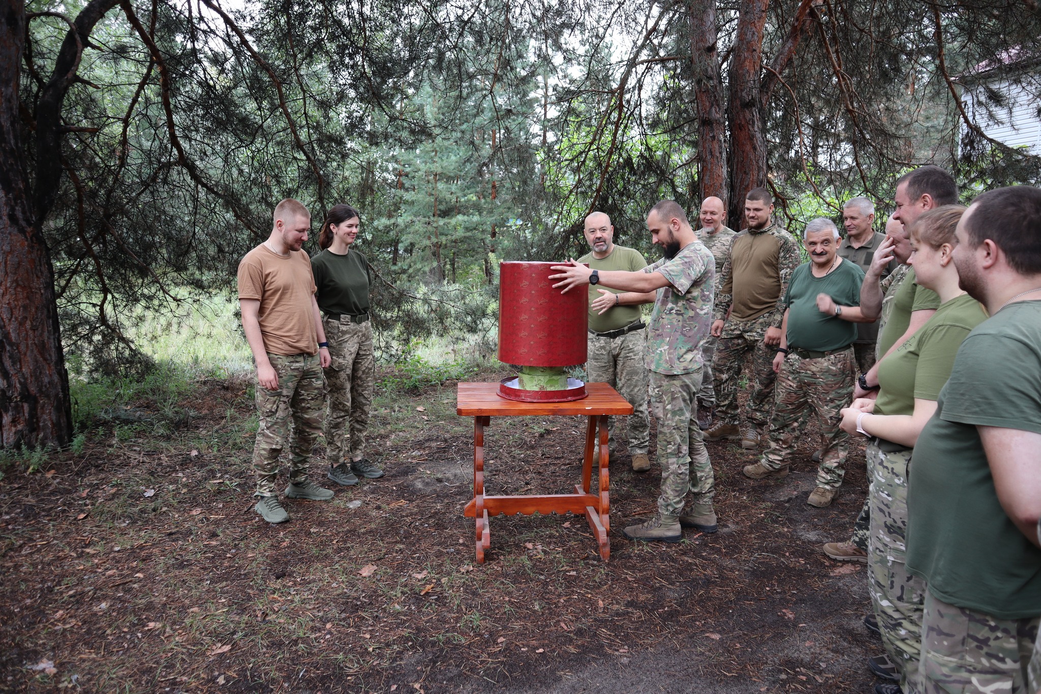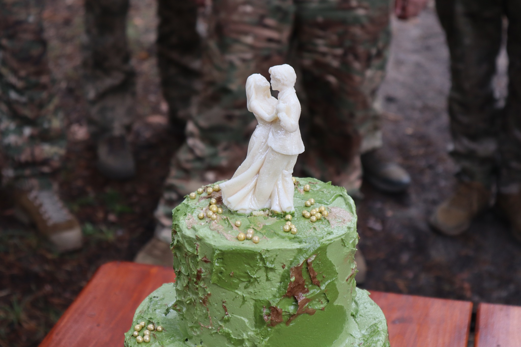 «На схід України повернулися, звісно, з весільними короваєм… – А побратими та посестри невідомо де замовили і презентували молодятам справжній весільно-армійський торт! Щасливої долі Максиму та Марії! – І гірко молодим!», - йдеться у дописі.