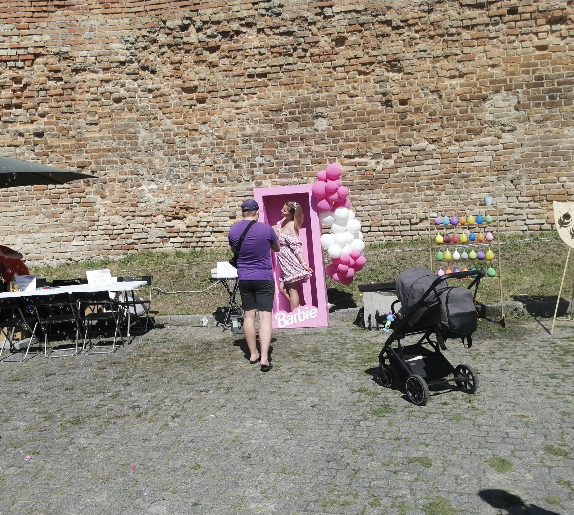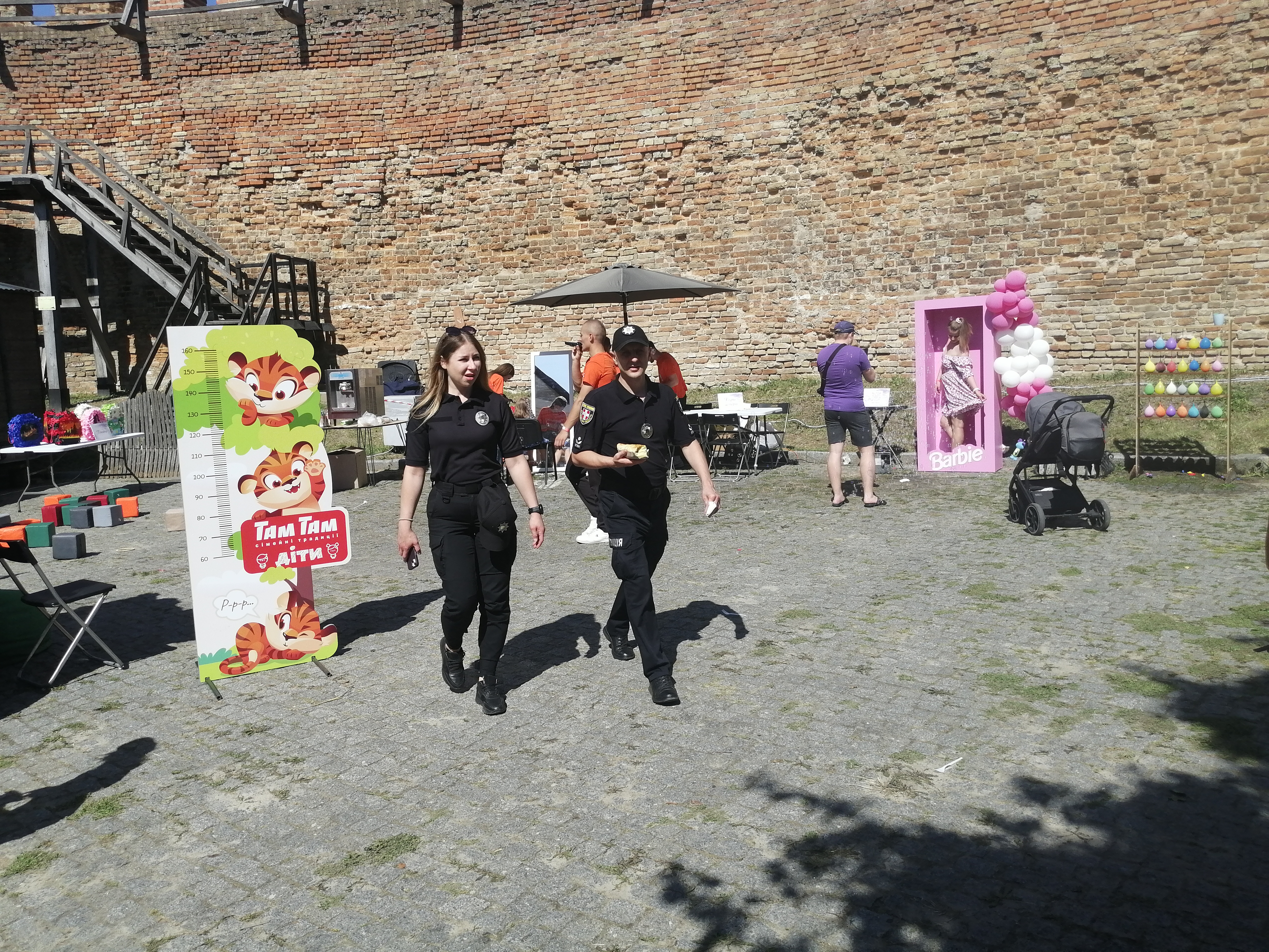 На фестивалі є зона та розваги для дітей: фотозона з коробкою барбі, аквагрим на обличчі, також можна скласти кубики, попригати на батуті, розбити пеньяту.