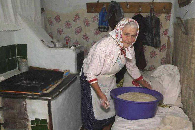 "Тісто вже готовеє, файне тістечко. Буде хлібчик хороший. Довго, довго треба місити. Така мука добрая, не можна відірвати. Пшеничина, то сама найлучша мука", — радіє господиня.