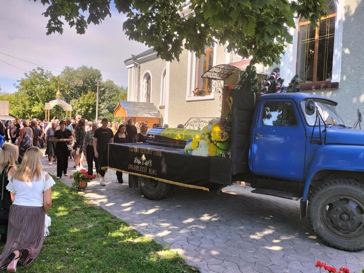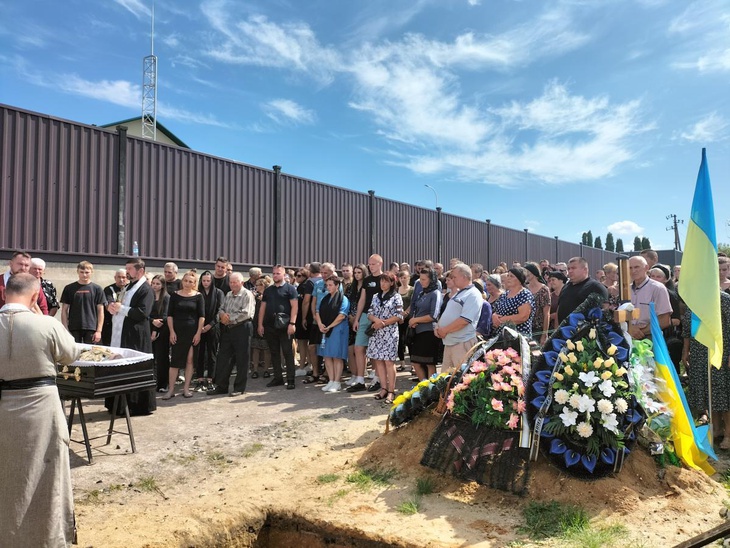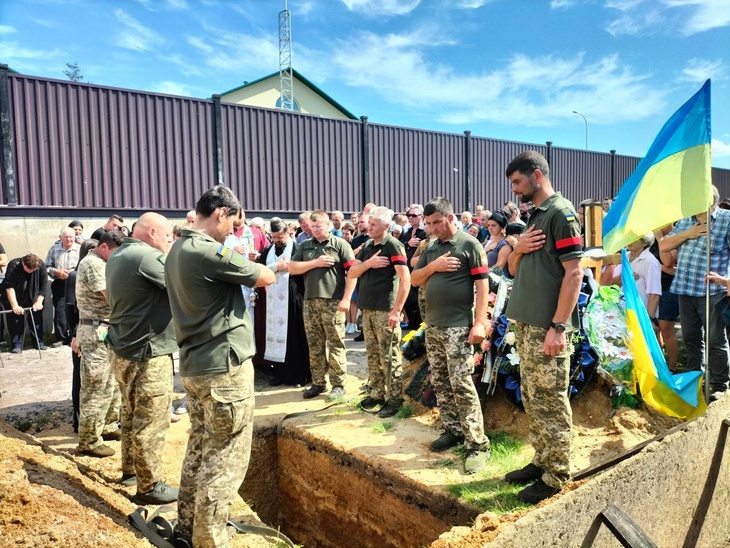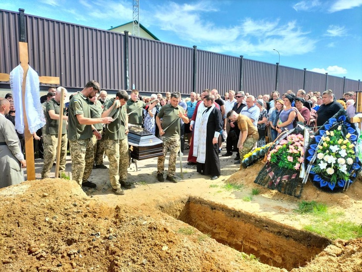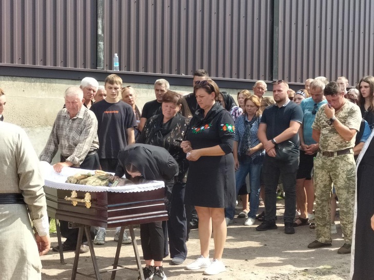 Попрощатися з мужнім захисником України прийшли не лише родичі, знайомі, колеги, сусіди, однокласники, а й побратими, котрі не приховували сліз жалю та душевного болю.
