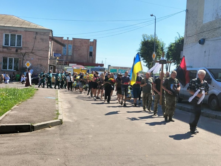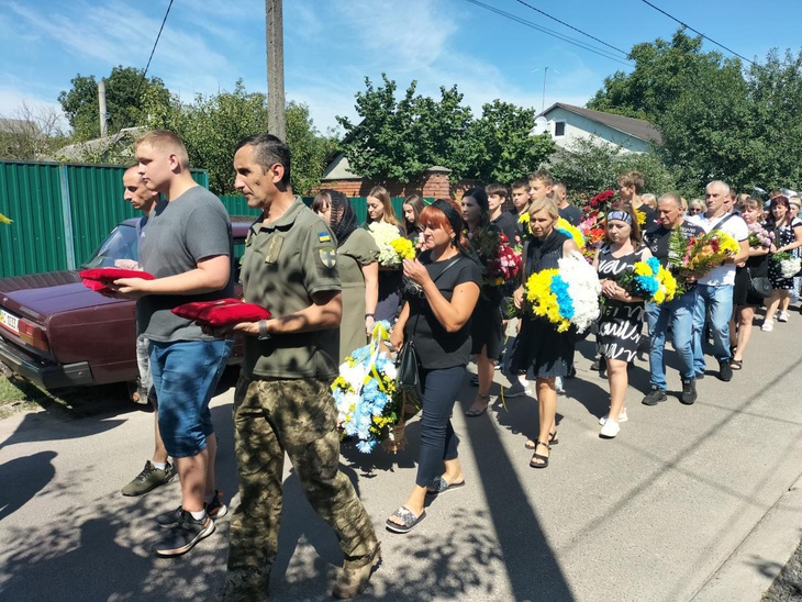 Велелюдною процесією під звуки оркестру тіло Юрія Куденчука провадили від рідного дому. Вже втретє цією вулицею проводжають у Вічність українських захисників.