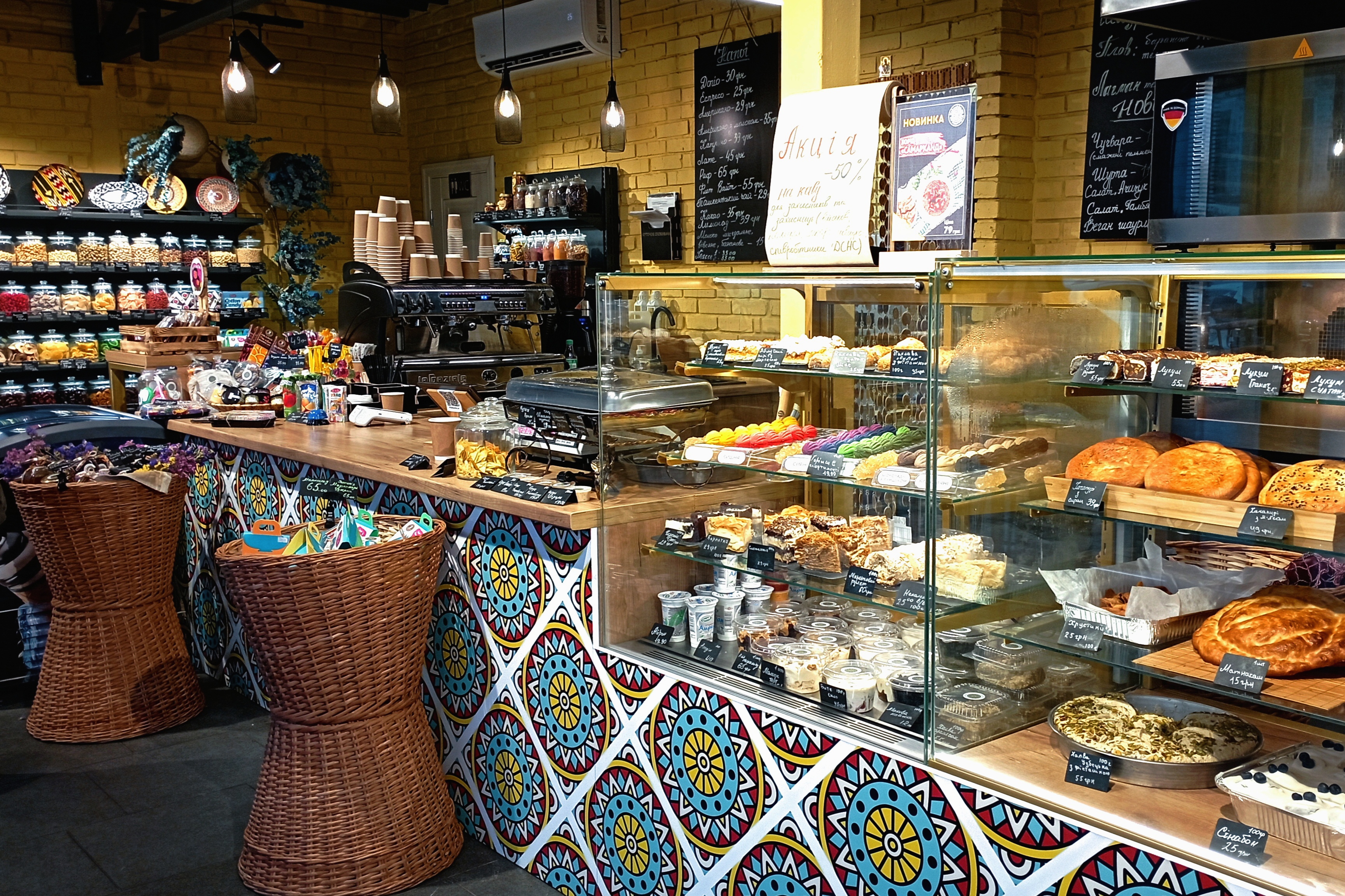 Попри похмурий та прохолодний ранок, заклад огортає відвідувачів теплом і світлом. Команда «Узбечки» вже в роботі та готова приймати відвідувачів. Бармен Петро може відповісти на будь-які питання, які цікавлять гостя та вже готує комусь каву. Дівчата зайняті випічкою — нова партія смаколиків скоро піде в піч.
