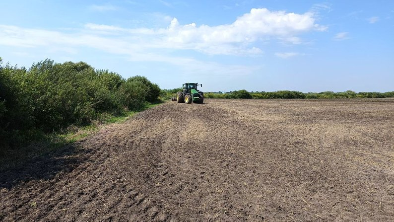 Один трактор засіває орієнтовно 100 га ріпаку на день, — розповідає головний агроном дільниці агропідприємства Святослав Сібіковський. Каже: планують засіяти дві тисячі гектарів до 25 серпня, а розпочали сіяти озимий ріпак 6 серпня.