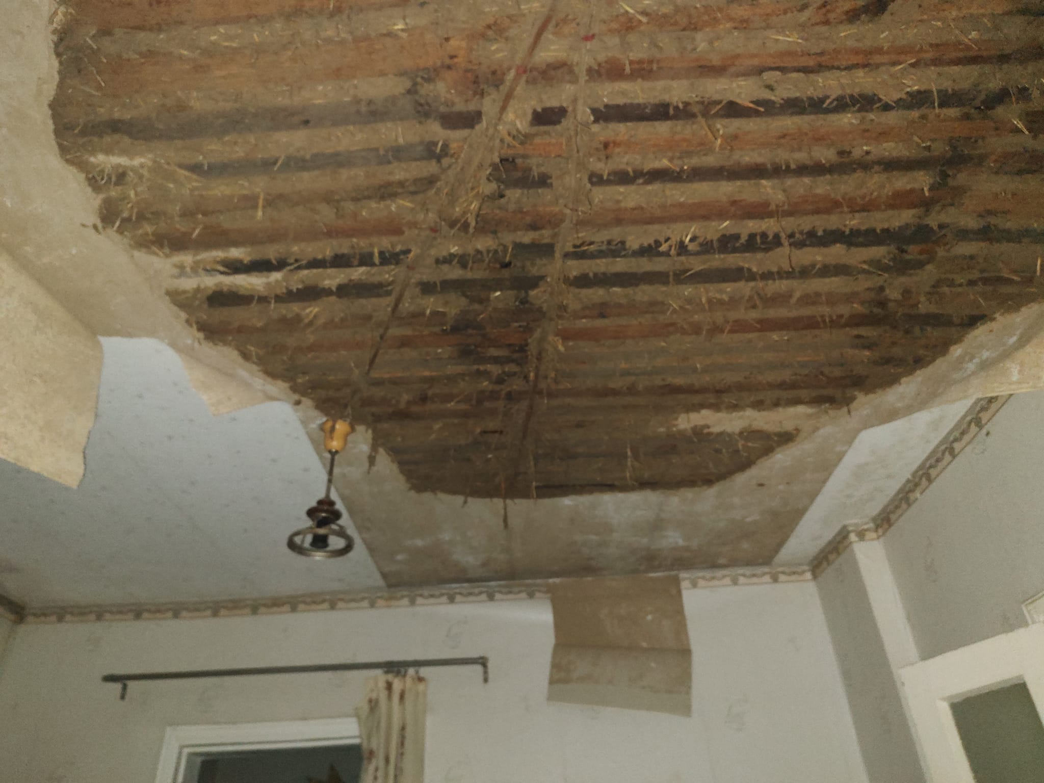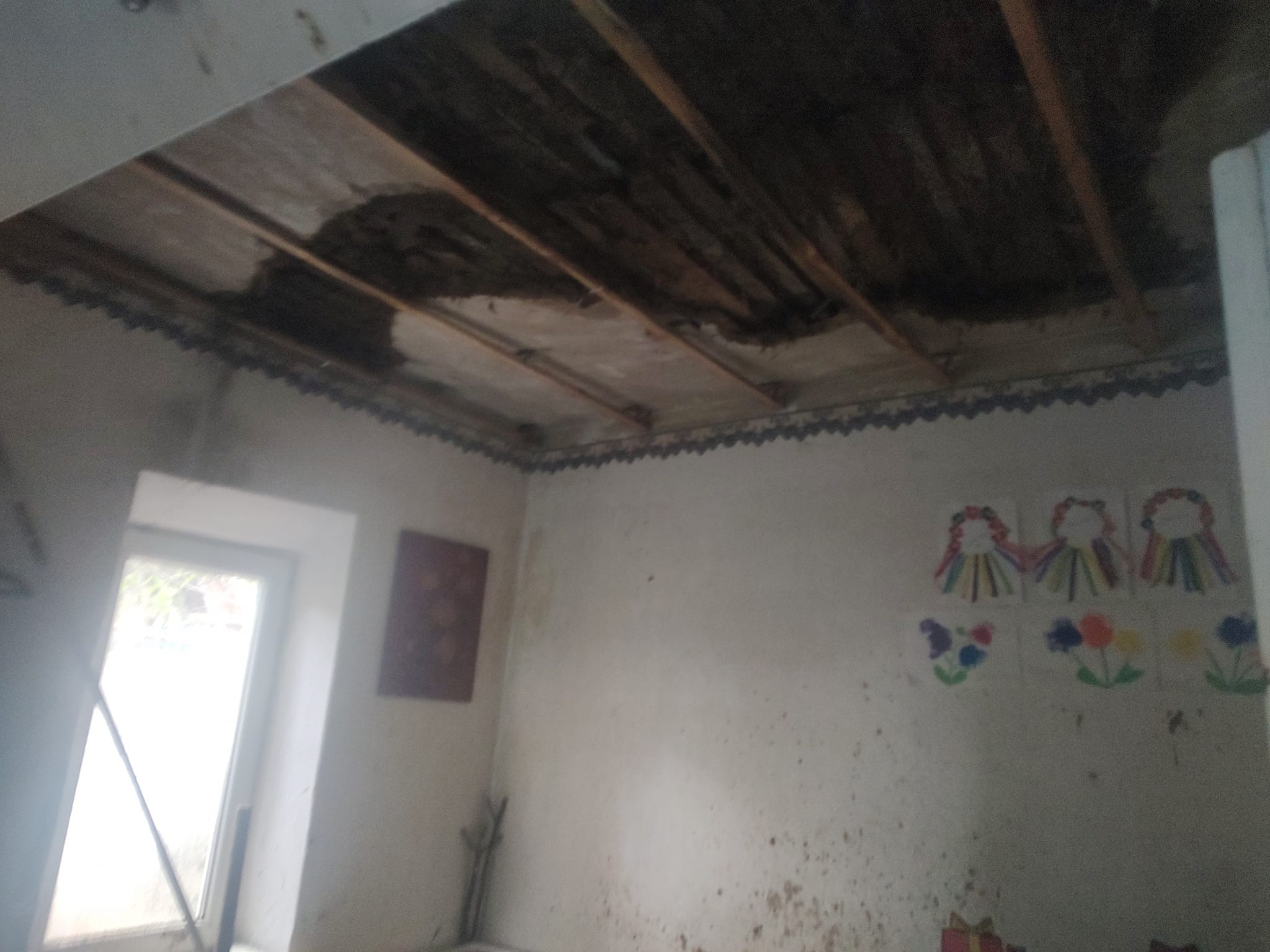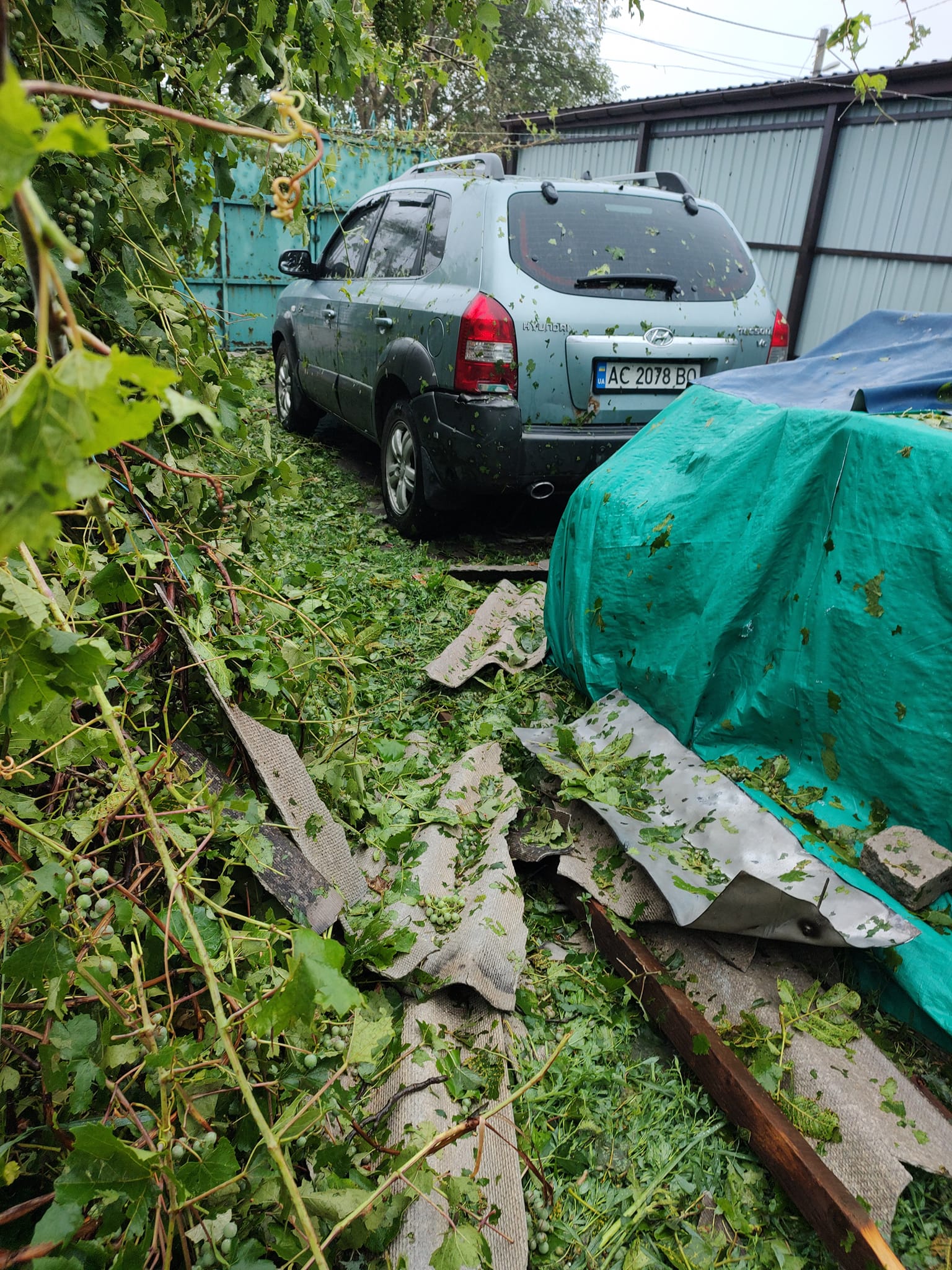 «Почали демонтувати старий дах, все зняли - і почалася гроза, якої за прогнозами не мало бути. Принаймні так показувало вранці... Накрили банерами знову, але це мало допомогло.... Дощ як з відра, град знову, менший, як сливка, але .. тупо ще одна серія знищення всього що мали... Тепер уже все, впав саман у вітальні та кухні. Все знову залило водою. Взагалі все. Меблі, техніку, і, одяг все у глинв і мокрі.. Тепер робити ремонт повний, а усіх кімнатах, і міняти треба перекриття.. якого нема», - розповів Ігор Тихолаз.