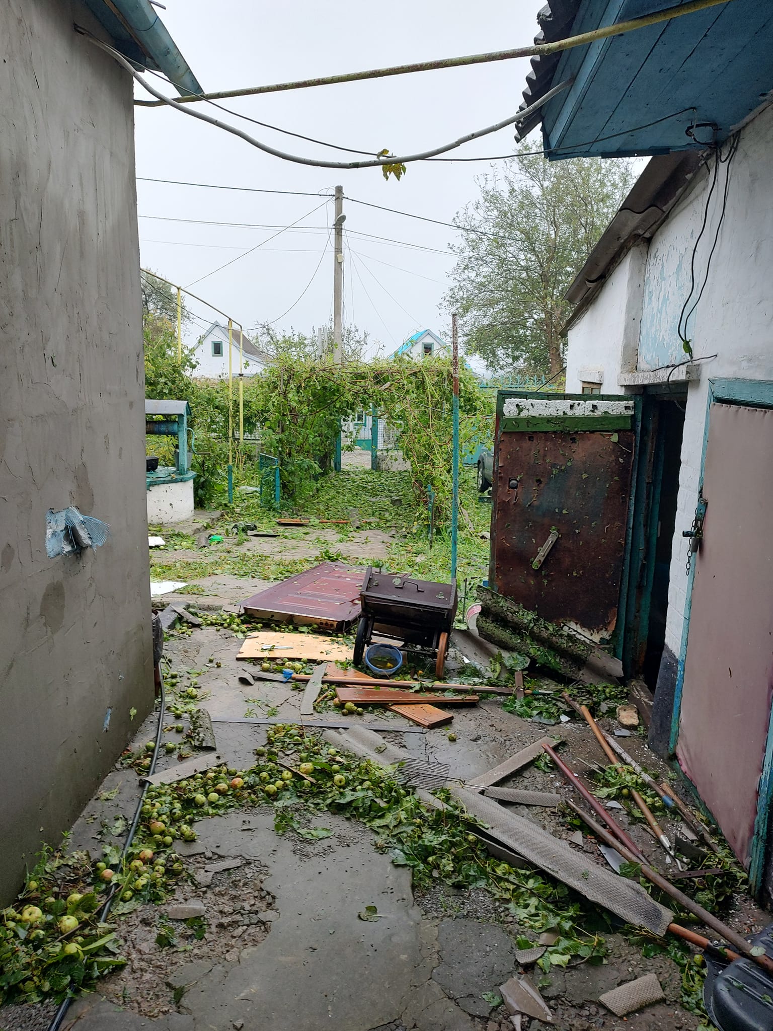 «Шквалом знесло півдаху, вибило вікно, впала стеля в одній кімнаті, одна стіна гола обвалилася геть, вирвало кілька дерев з коренем, всю городину під чисту знищило. Не можемо оговтатися. Всі живі, цілі, слава Богу, не знаю як врятувалися, метрові куски шиферу у кімнату залітали... Електрики нема і хто зна коли буде, тут по району все відключено і навколо твориться жах», - писав він на своїй сторінці у фейсбуці.