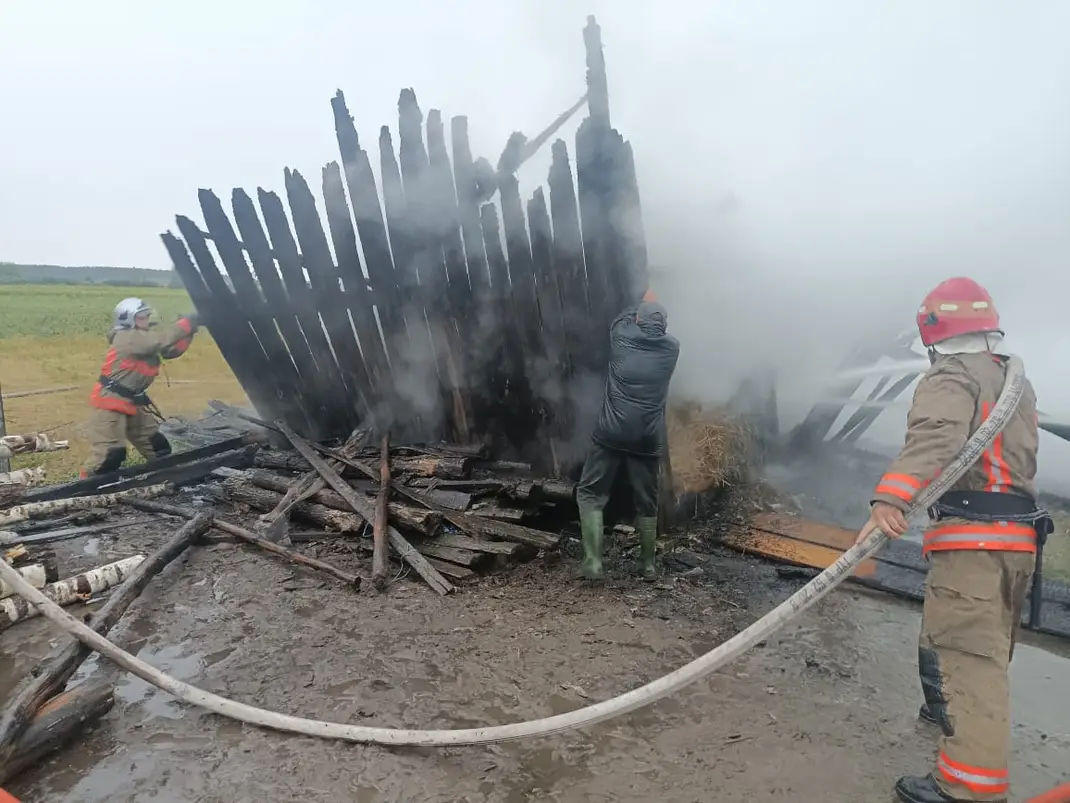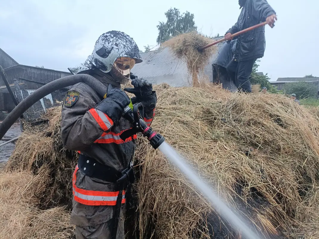 Загоряння відбулось зранку, внаслідок розряду блискавки спалахнув навіс для зберігання сіна.