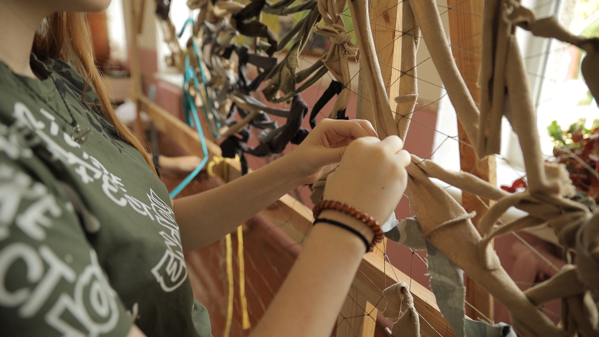 Волонтерство у Борщівці не обмежується пакунками на фронт. Місцеві жителі долучаються й до інших активностей, зокрема, плетуть маскувальні сітки для українських бійців. Фото: ШоТам.