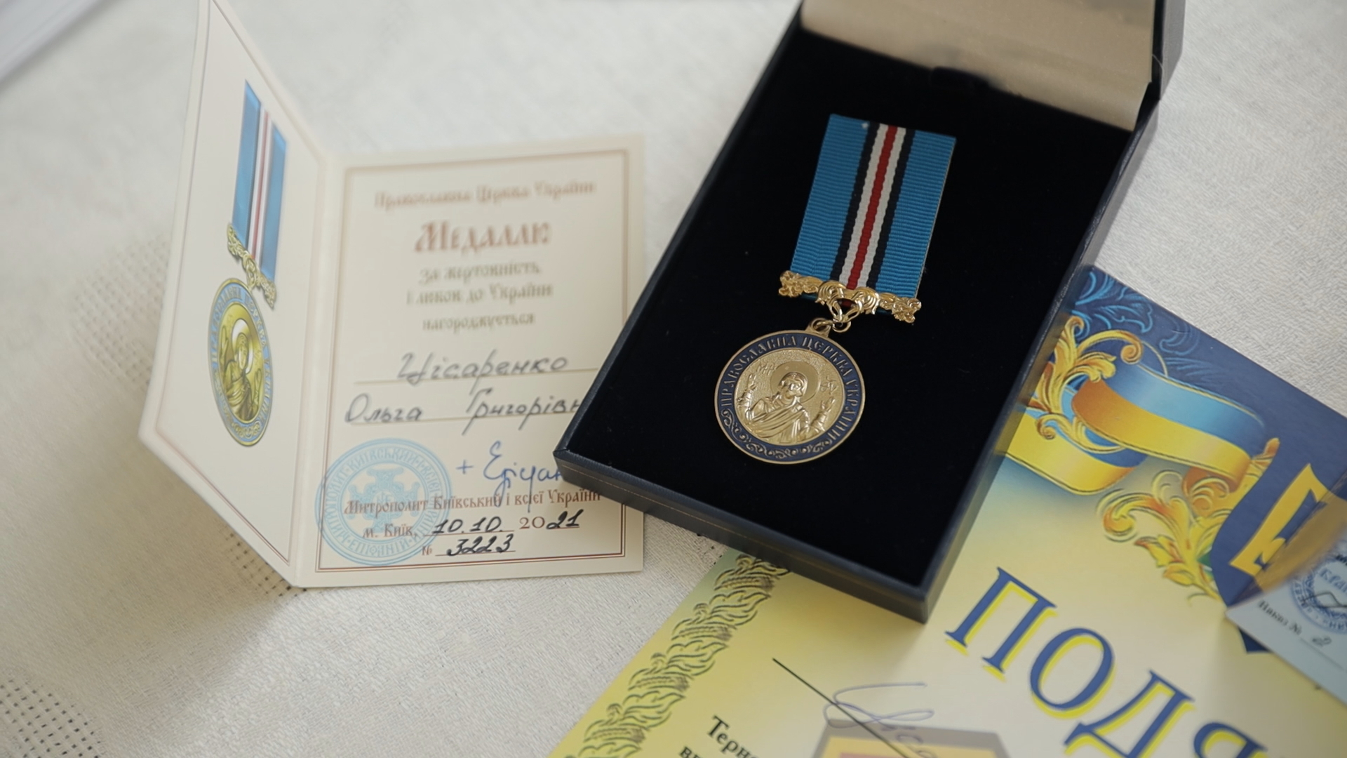 У жовтні 2021-го року Ольга Цісаренко отримала медаль «За жертовність і любов до України» від предстоятеля ПЦУ митрополита Епіфанія. Фото: ШоТам.