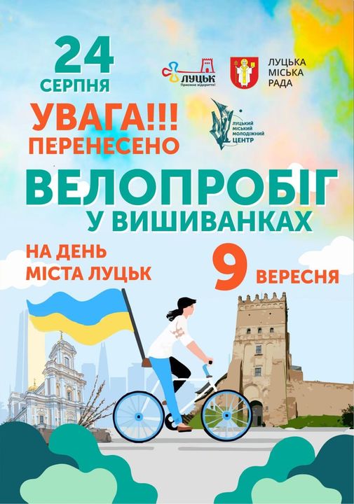 «Традиційний велопробіг у вишиванках, який вже став відомою візитівкою нашої громади, перенесено з Дня Незалежності (24 серпня) на День міста (09 вересня)», – йдеться у повідомленні.