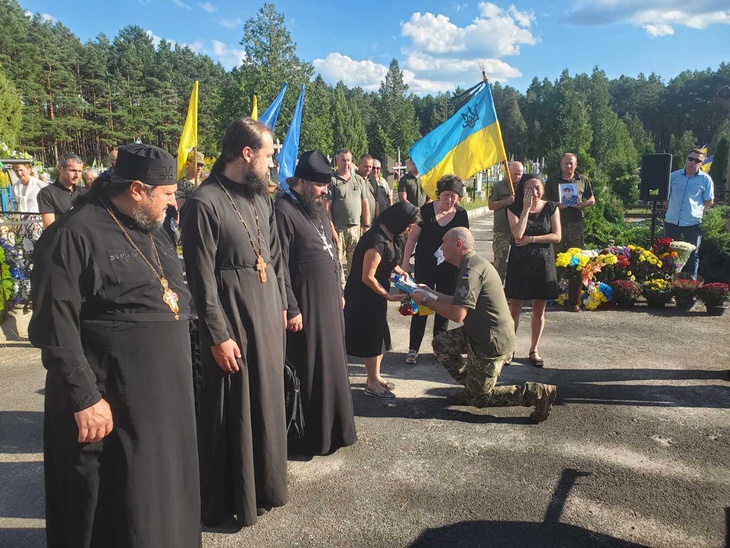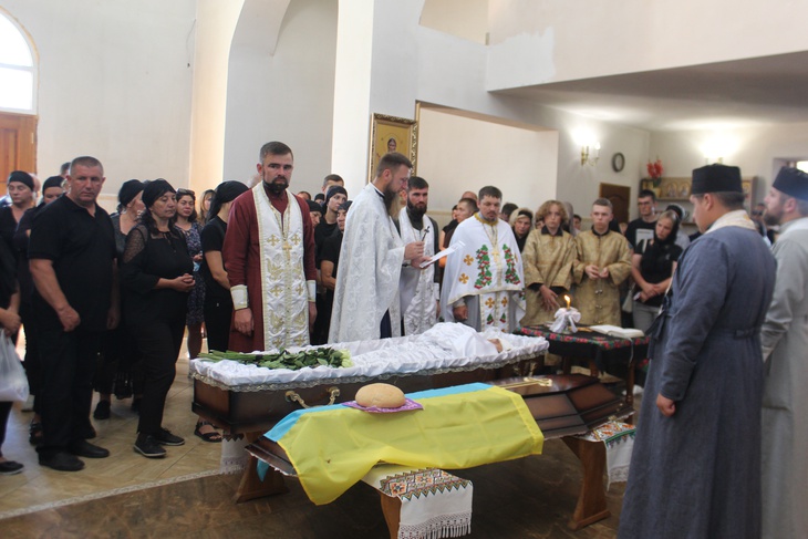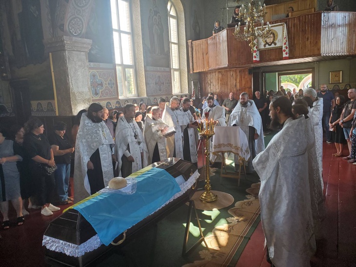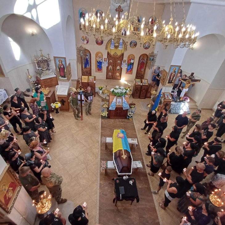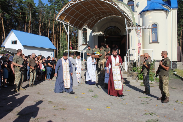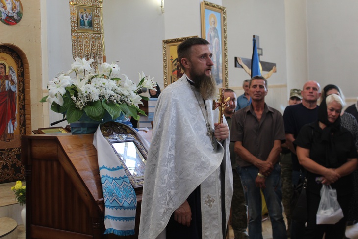 Чин похорону за упокій душі захисника України звершили священики у Храмі Віри, Надії, Любові та їх матері Софії.