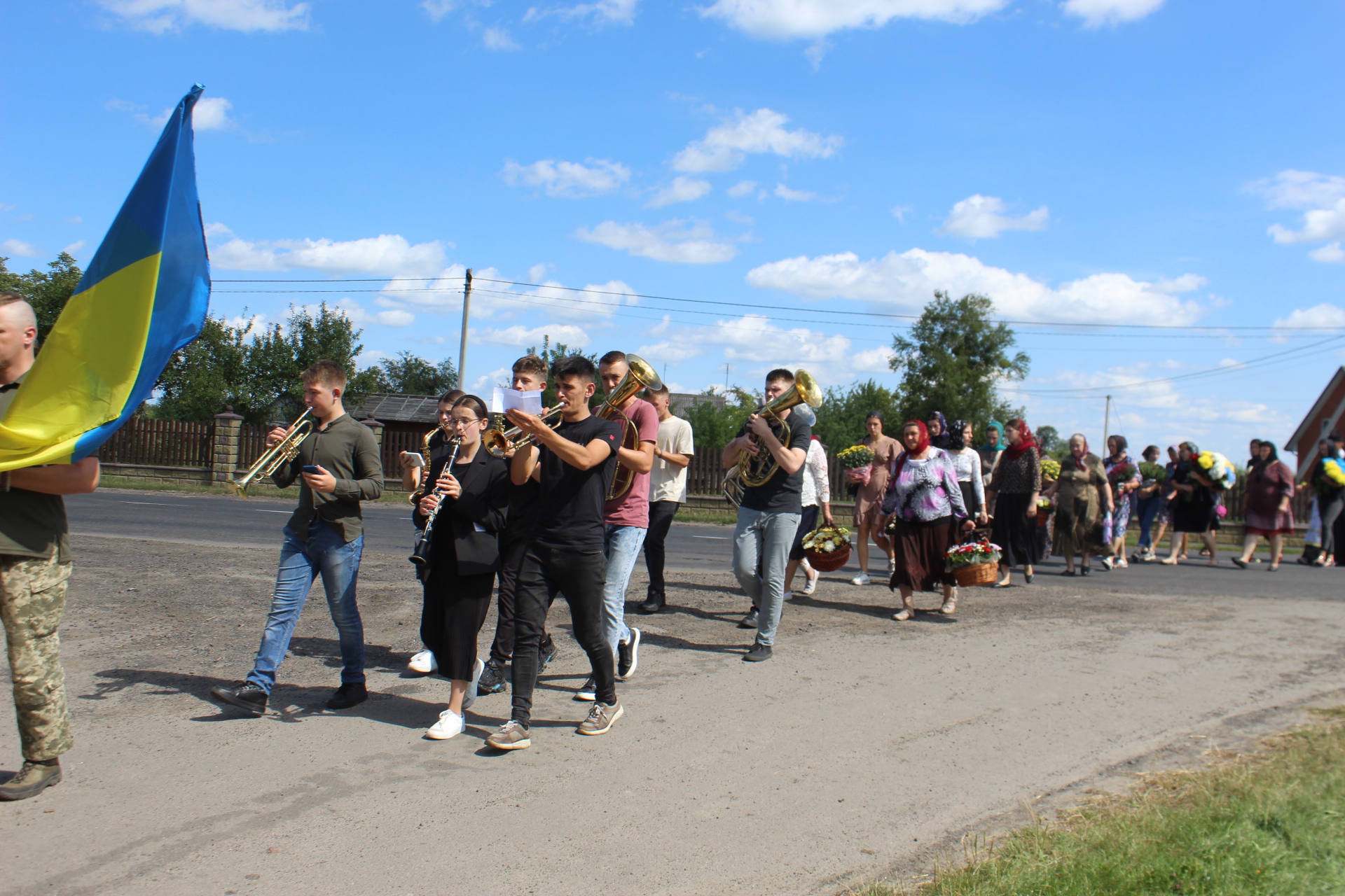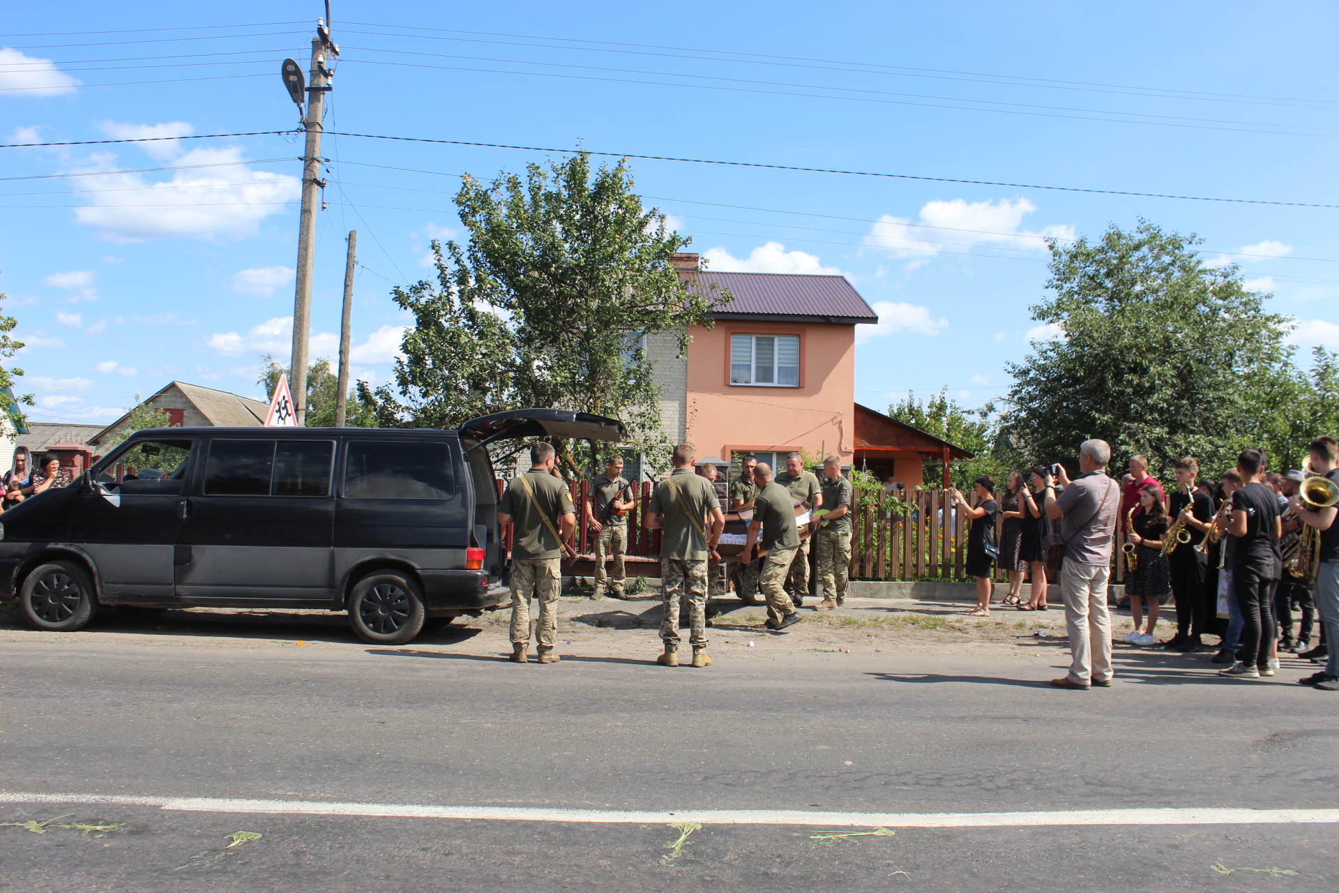 Церемонія прощання з військовослужбовцем розпочалась біля будинку в рідному селі, відспівали бійця у Свято-Хресто-Воздвиженському храмі. Поховали Героя з усіма військовими почестями на місцевому кладовищі.