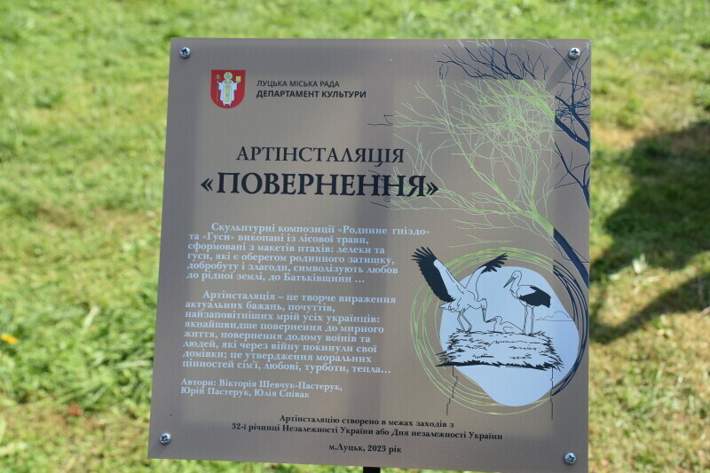 В рамках заходів з відзначення 32-ї річниці Незалежності України у парку культури та відпочинку імені Лесі Українки в Луцьку встановили артінсталяцію «Повернення», яку складають скульптурні композиції «Родинне гніздо» та «Гуси».