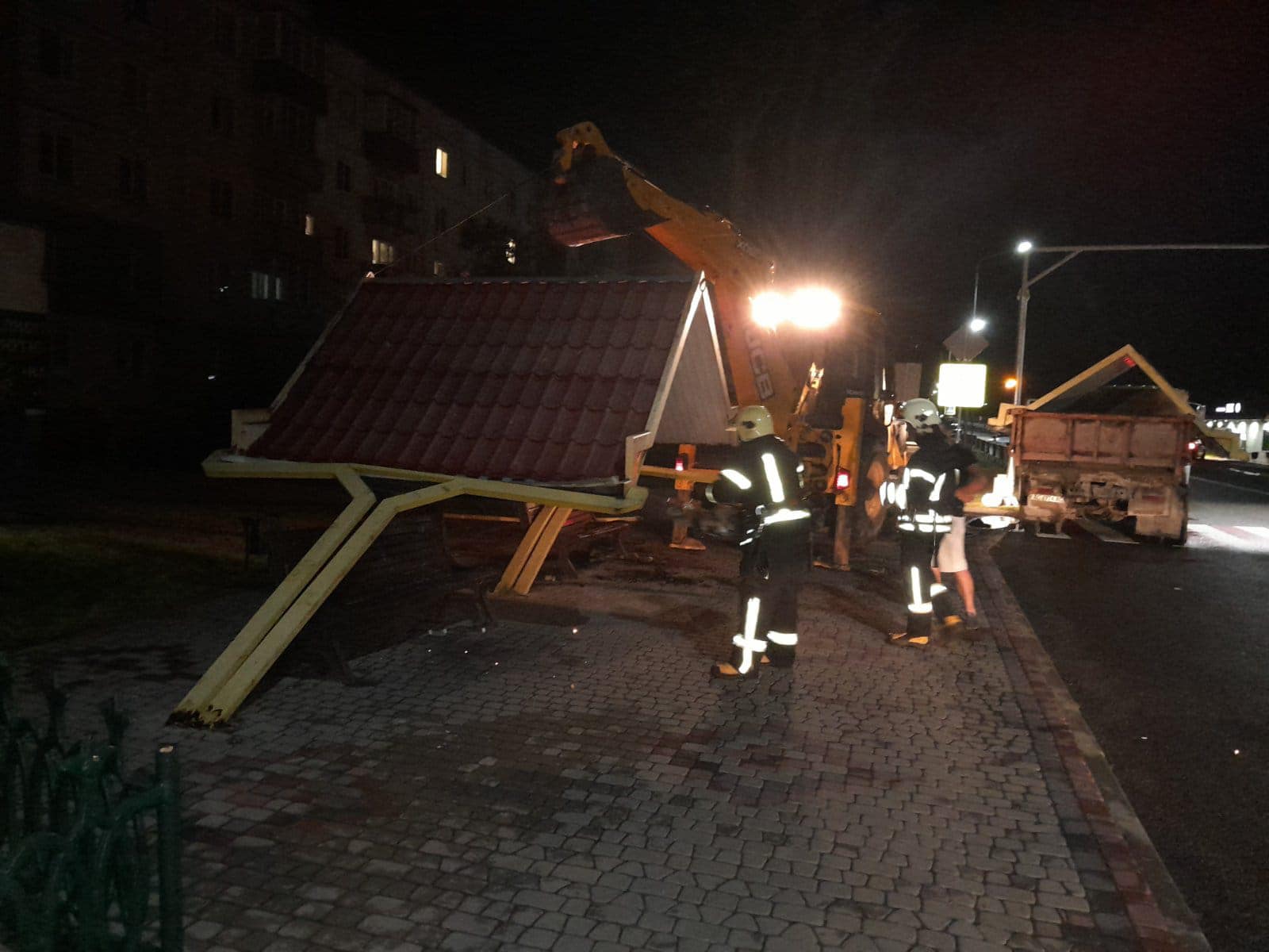 У неділю ввечері, 26 серпня, рятувальники Володимирського району прибрали дерева з проїжджої частини та демонтували зруйновану негодою зупинку.