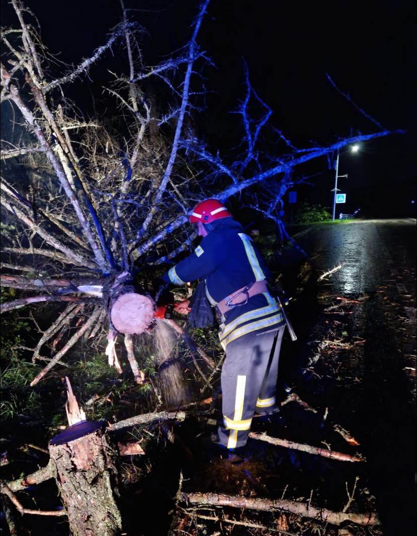 «Рятувальники 7-ї та 15-ї державних пожежно-рятувальних частин м. Володимир та смт Локачі, використовуючи спеціальний інструмент, прибрали дерева з проїжджих частин та ліквідували наслідки стихійного лиха, а саме провели демонтаж зруйнованої зупинки», - йдеться у дописі.