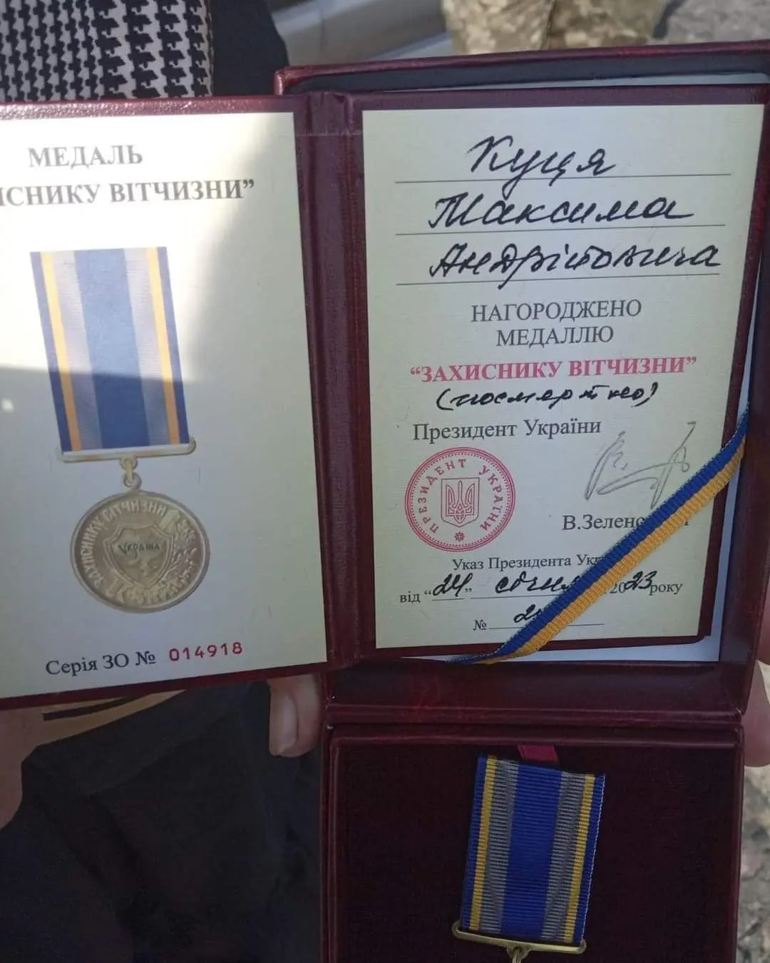 У понеділок, 28 серпня, Почесну відзнаку батькам загиблого вручив представник Національної гвардії України, - йдеться на фейсбук-сторінці Типове Ратне.