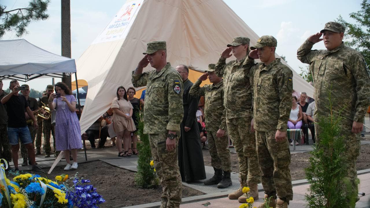 У Дмитрівці на Київщині відкрили меморіал на честь загиблих військових 14-ої окремої механізованої бригади імені князя Романа Великого.