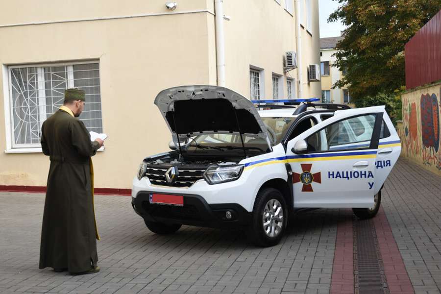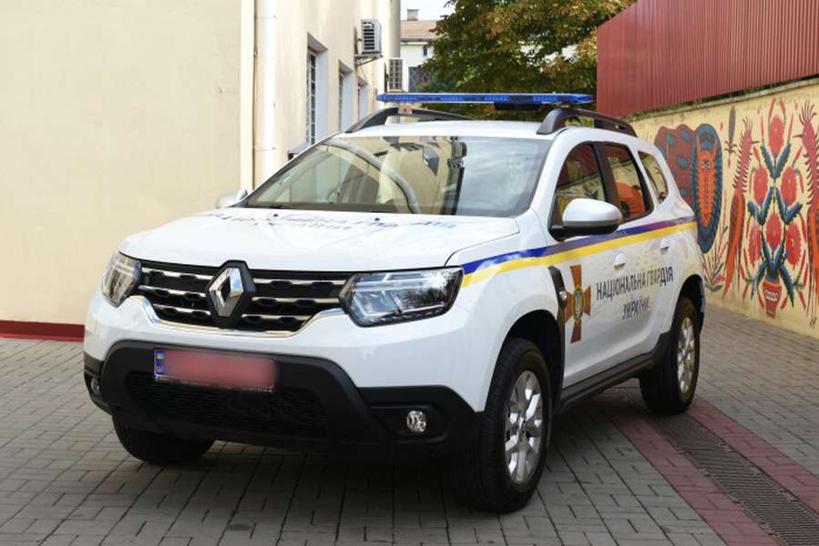 Автомобіль має брендування символікою НГУ та все необхідне обладнання – LED-ходові вогні, камеру заднього ходу, проблискові маячки синього кольору, радіостанцію Motorola.