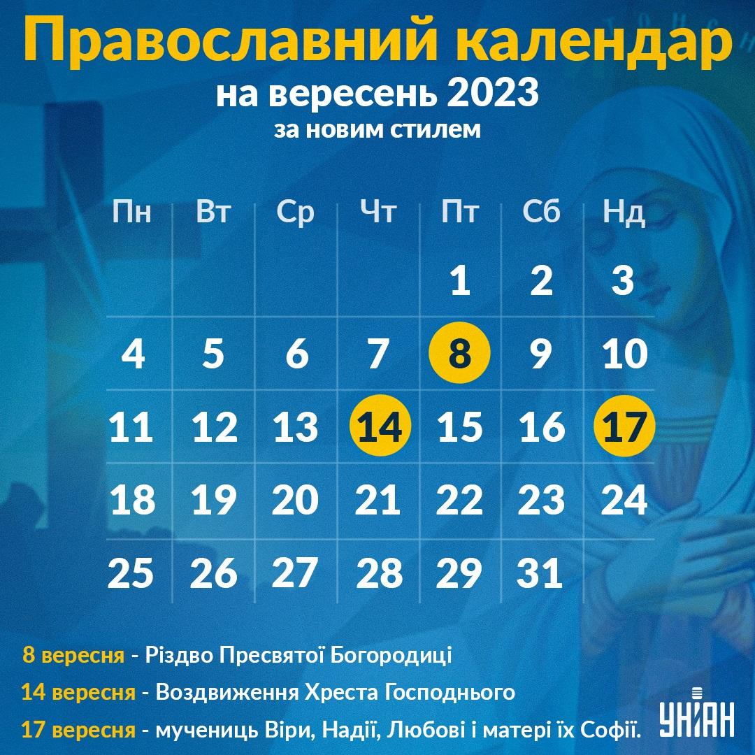 Православний календар на вересень 2023 - перелік свят за новоюліанським календарем