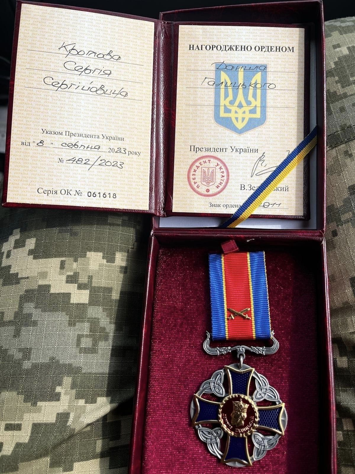 «Орден Данила Галицького глава держави вручив нашому побратиму, воїну Князівської 14 бригади майору Сергію Кротову! Вітаємо з високою нагородою! Пишаємося! Разом - до Перемоги!», - йдеться у дописі.