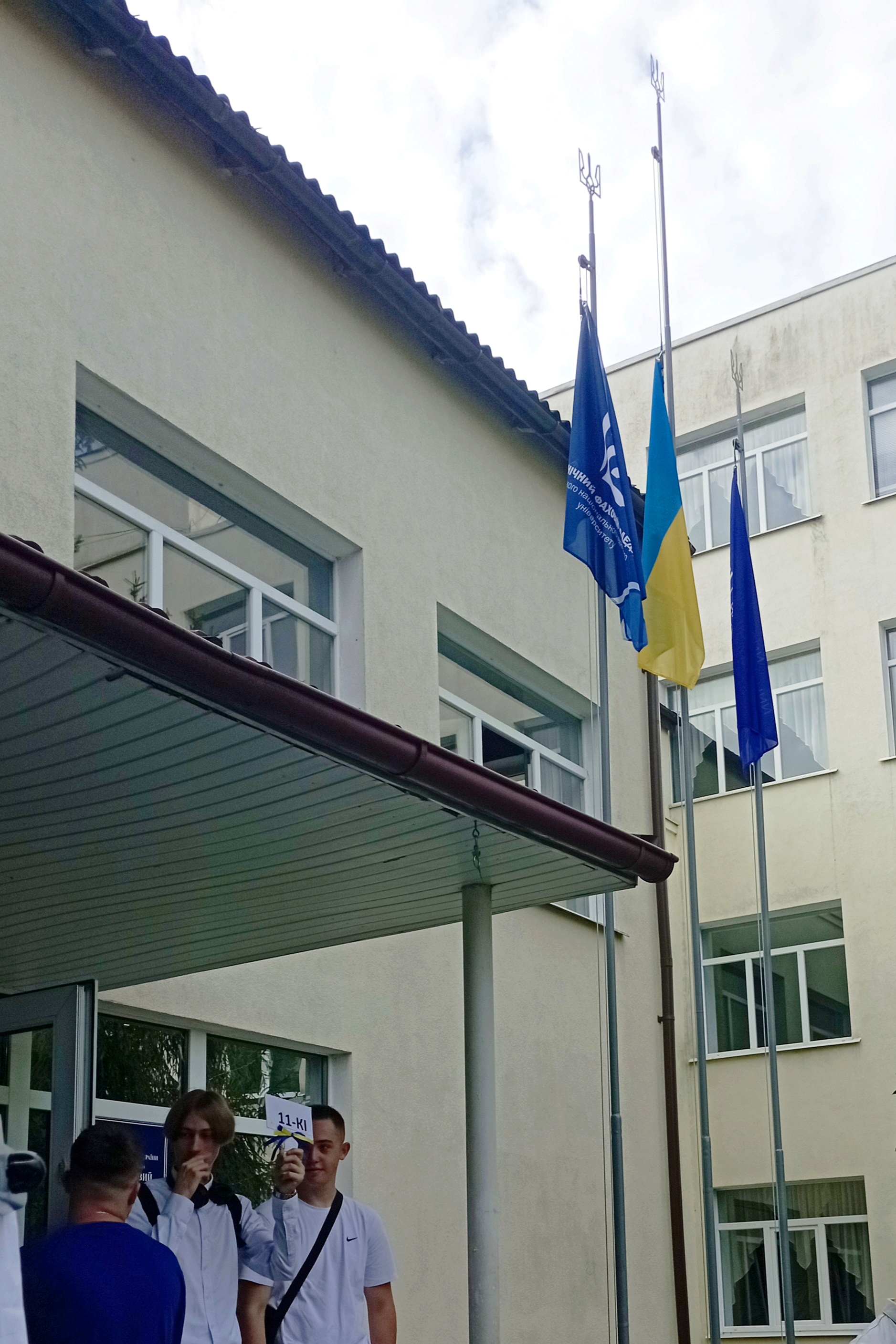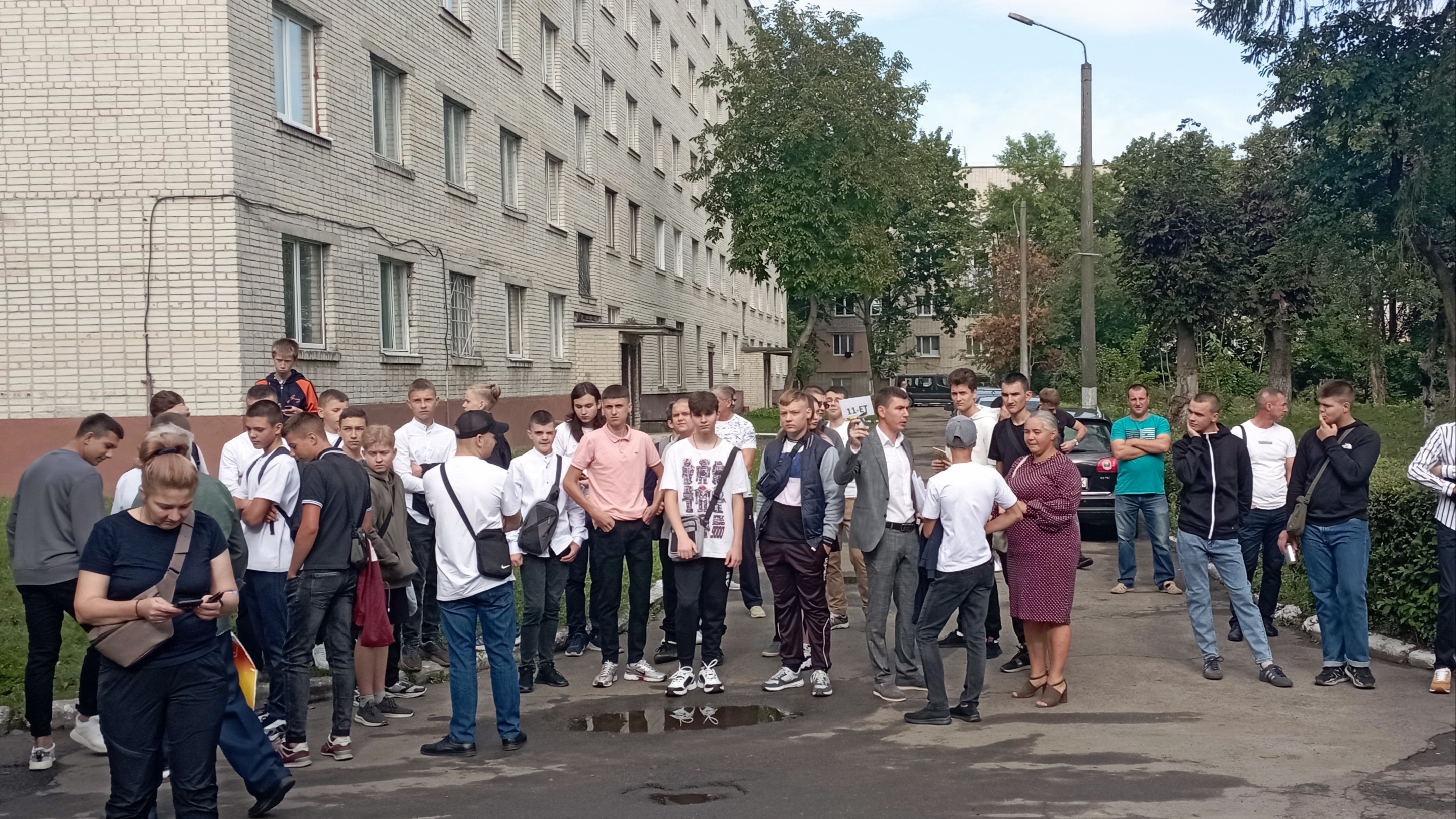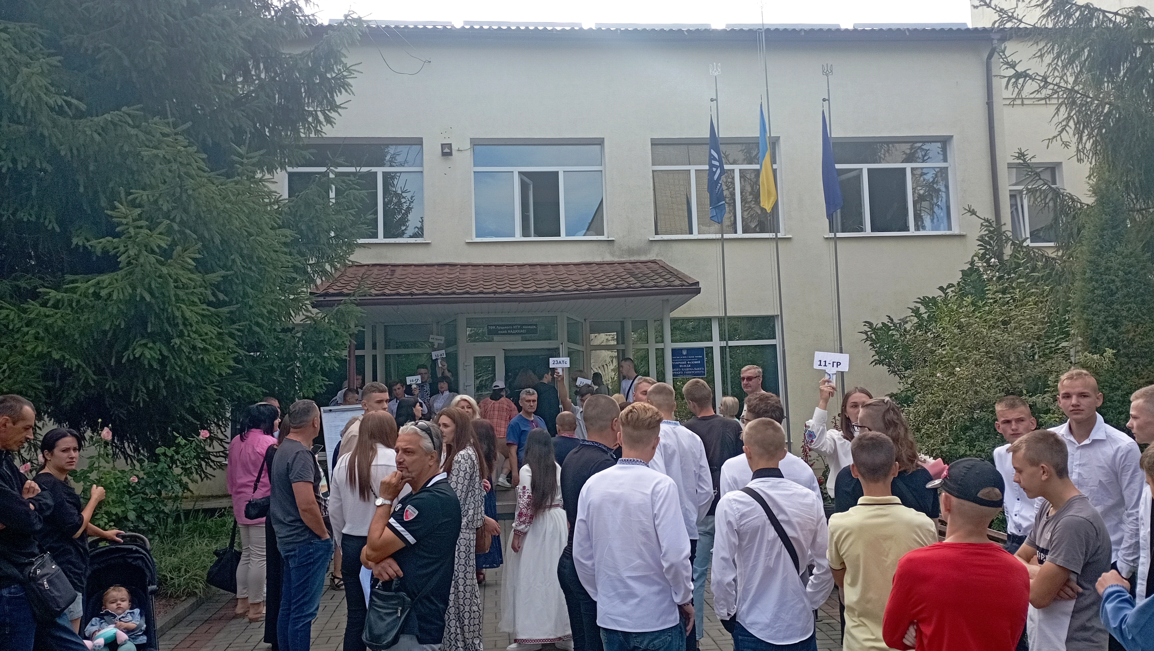Студентів перших курсів зібрали біля коледжу та розподілили по аудиторіях, де їх познайомили з навчальними керівниками та обговорили основні положення навчального процесу.