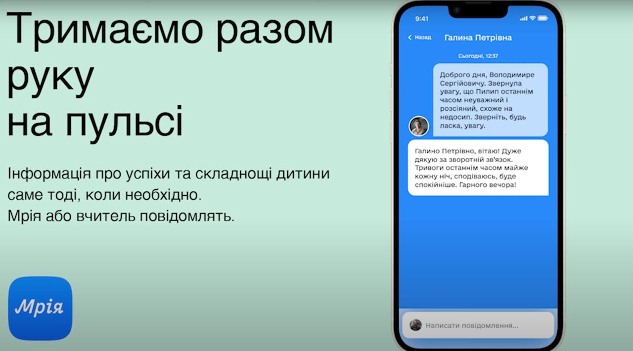 Батькам «Мрія» допомагатиме знати, чи перебуває їхня дитина в безпеці під час повітряних тривог. Для цього достатньо буде одного натискання в застосунку після того, як учитель завів дітей в укриття.