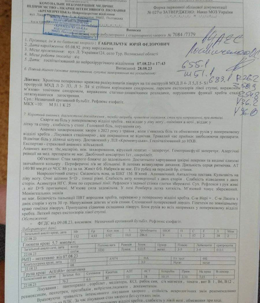 Юрій Габрильчук, військовий з села Тур на Ратнівщині, при виконнанні бойового завдання отримав травму хребта. Зараз чоловіку потрібна операція із встановленням шести імплантів з вирізанням грижі.