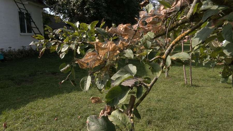 На деревах зараз добре видно павутинні гнізда, де живе та харчується гусінь цієї комахи.