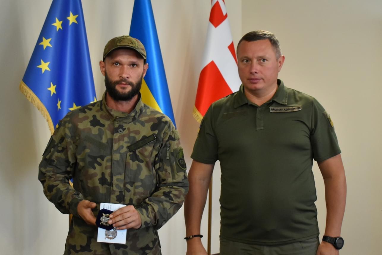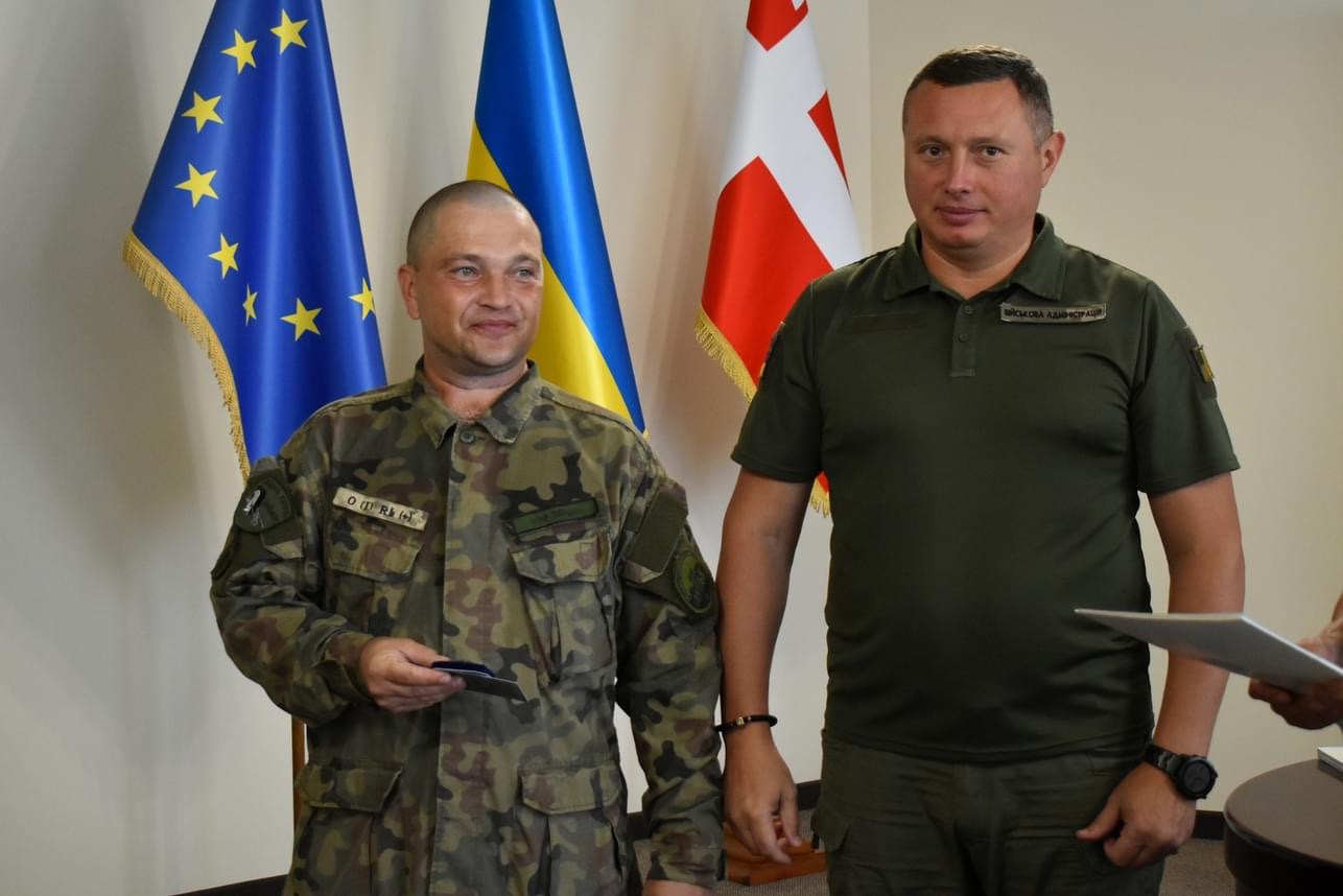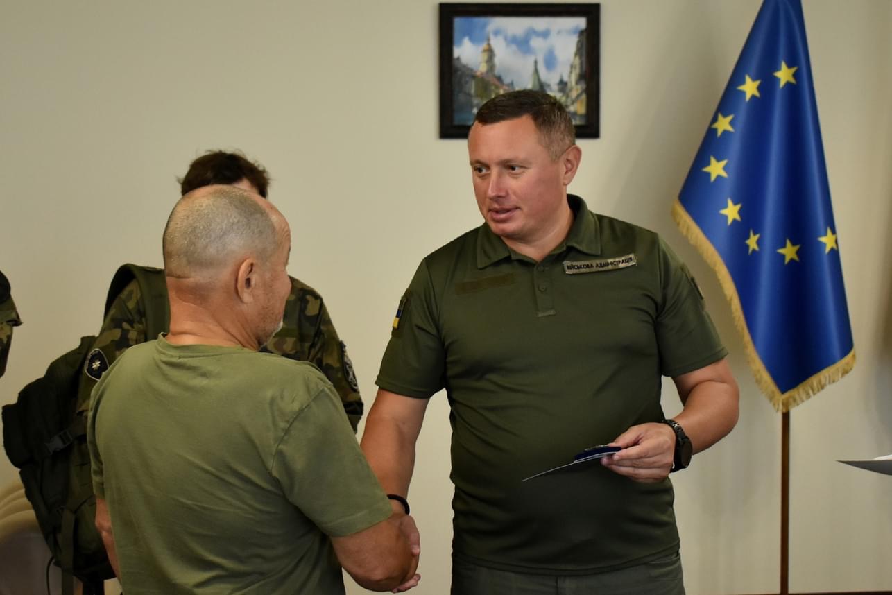 Начальник ОВА Юрій Погуляйко вручив пам’ятні нагрудні знаки командира 9-го армійського корпусу добровольцям Луцької громади та інструкторам навчально-тренувального центру «Тернове поле».