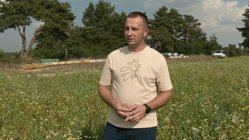 Бджоляр Сергій Потішук говорить: цвіт гречки й гірчиці є джерелом поживи для бджіл у передзимовий період. Його вулики стоятимуть біля поля до кінця вересня.