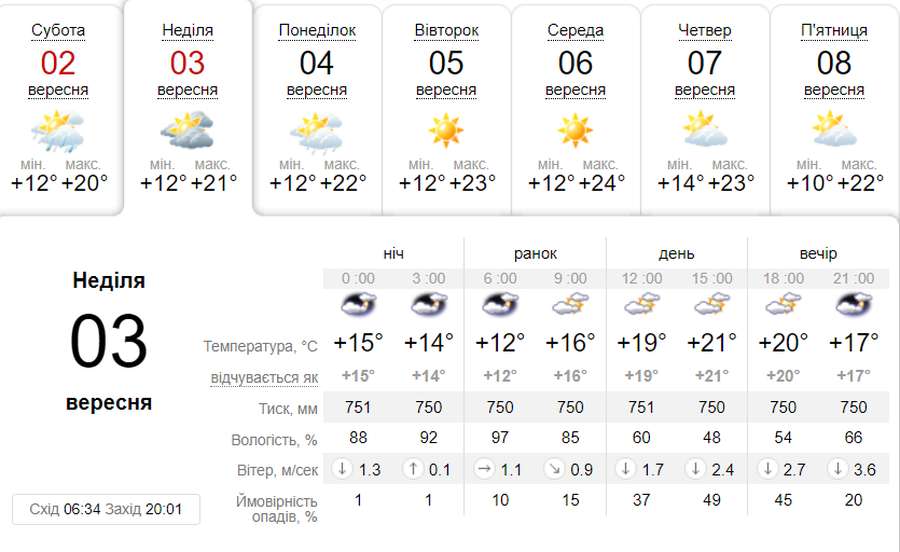 У Луцьку в неділю, 3 вересня, з ранку до самого вечора небо буде вкрите хмарами. Без опадів.