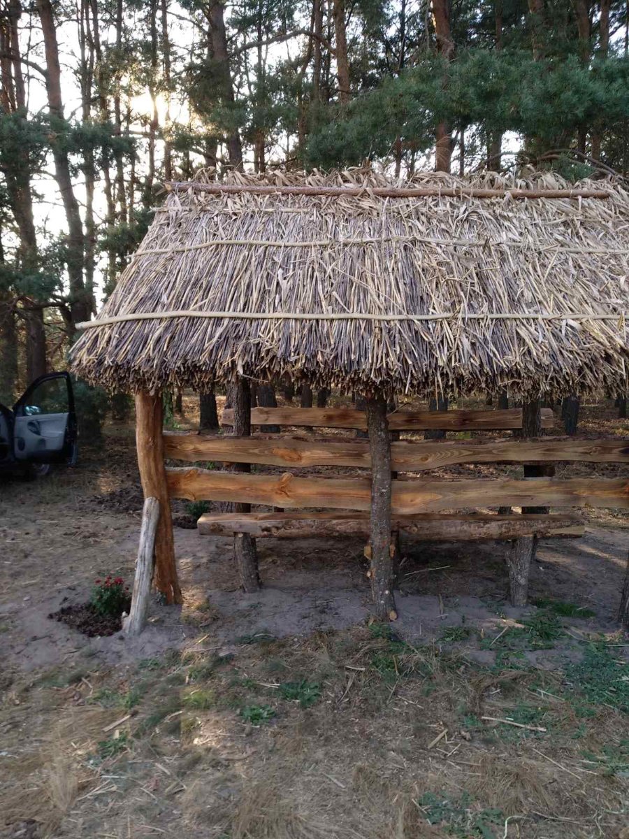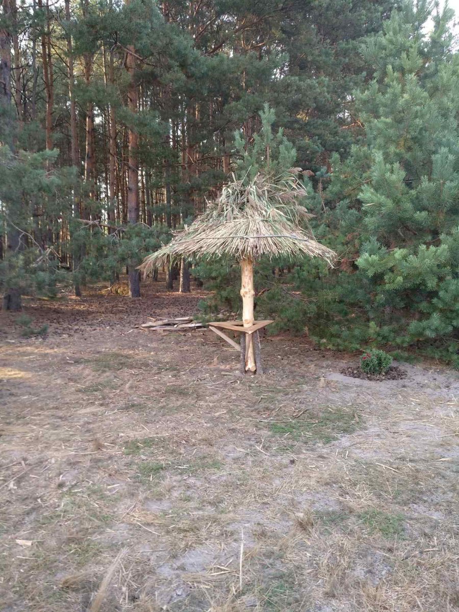 У рекреаційній зоні облаштували альтанку, гойдалку в поліському стилі, безпечне кострище. Територія прибрана та окультурена декоративними рослинами і виноградом.