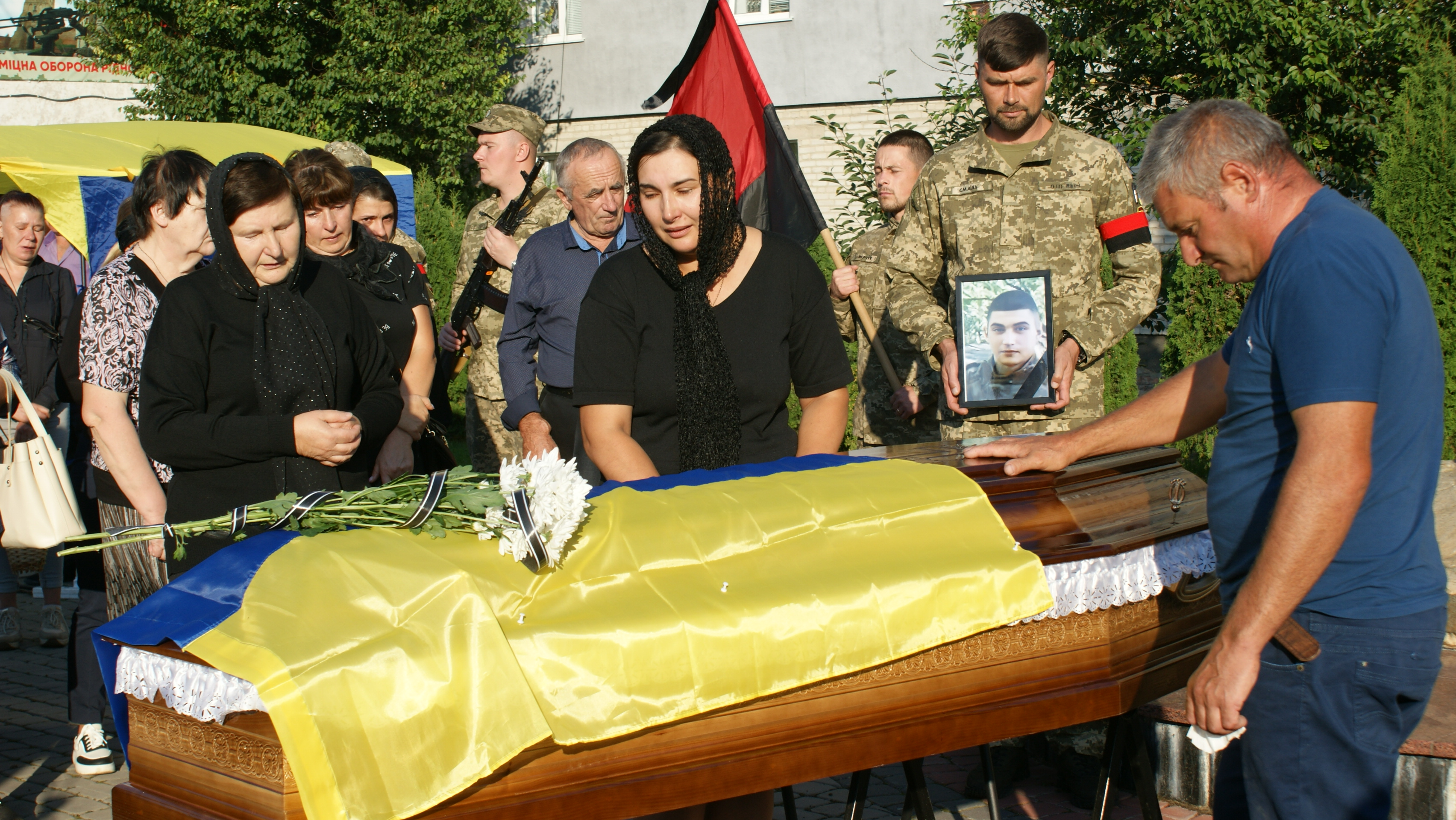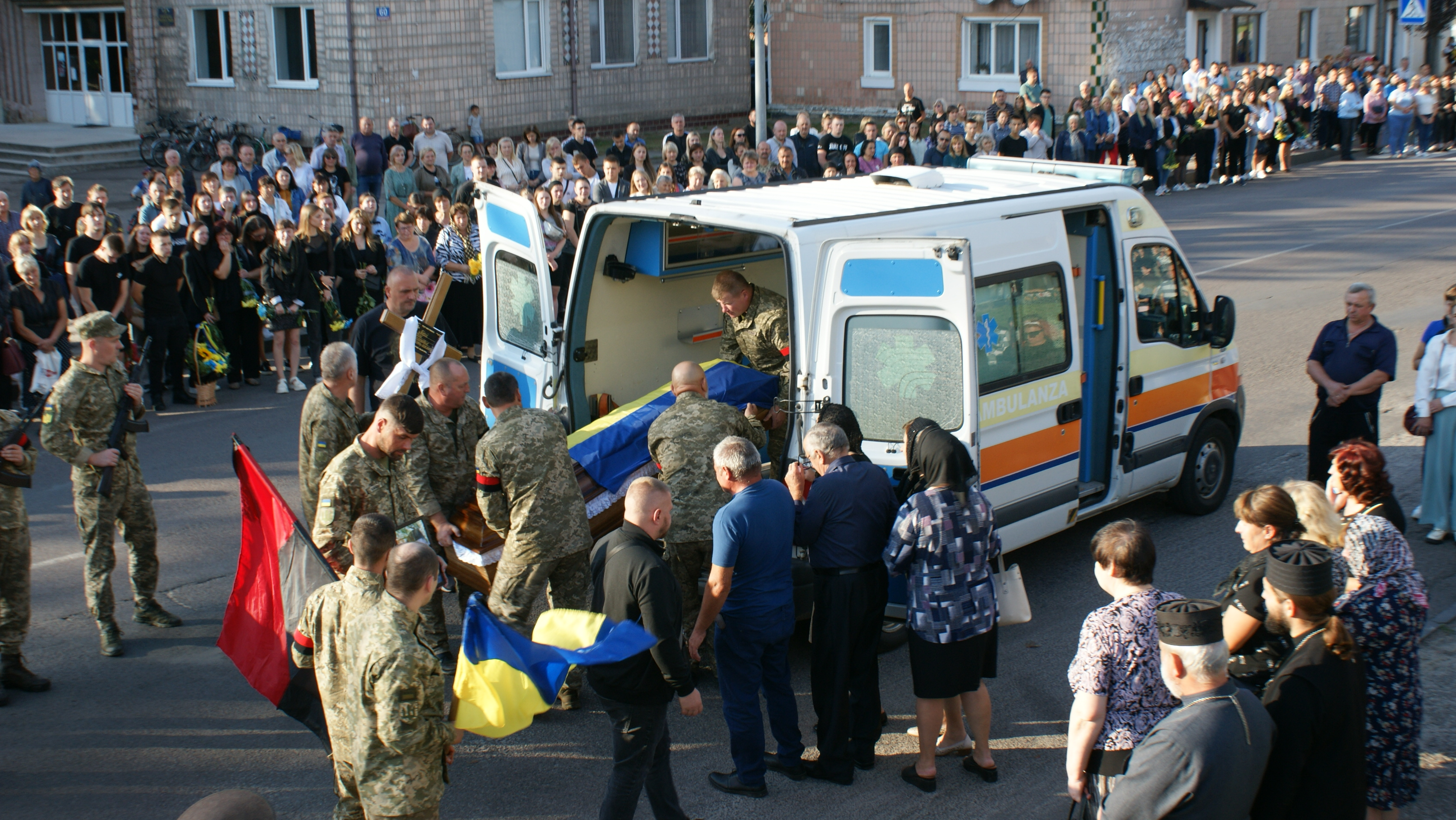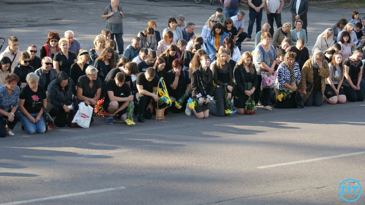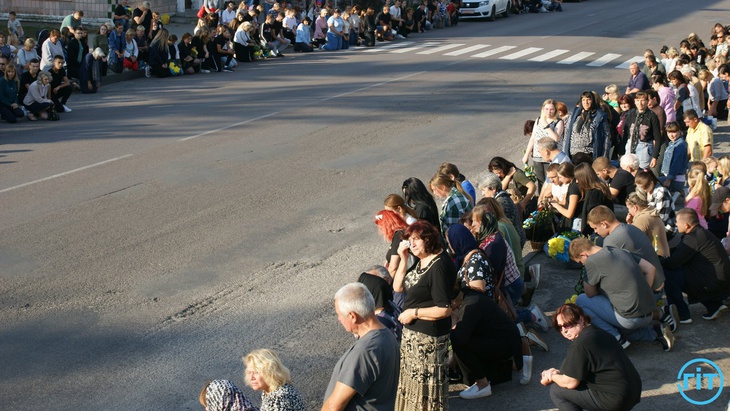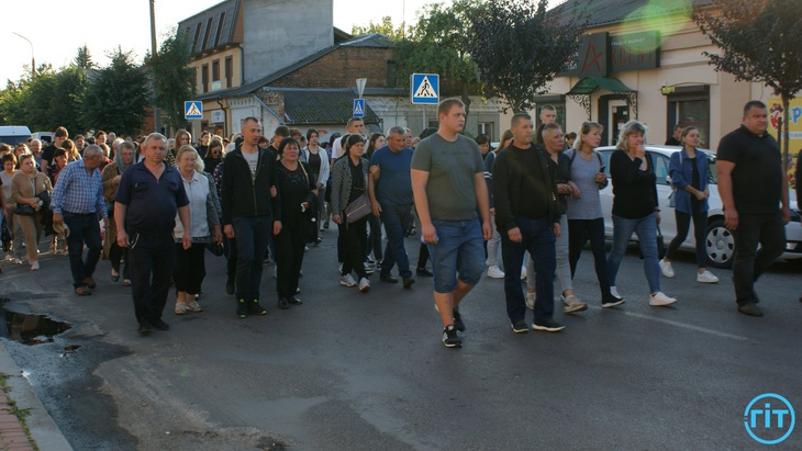 У Рожищі близько 17 години 20 вересня – велелюдно, але сумно. Люди несуть квіти переплетені чорними стрічками, а в небо лине незмінна з 2014 року «Плине кача…».